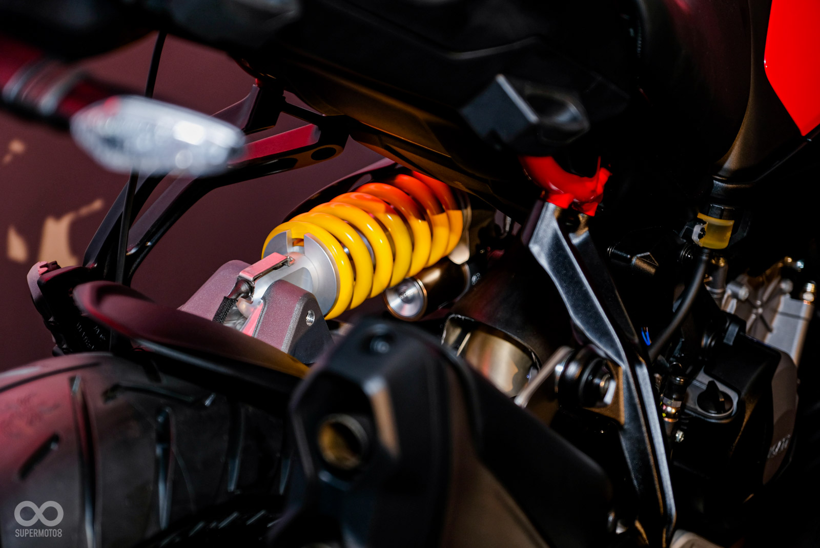 全新鋁合金單體式車架以引擎作為結構核心支撐,懸吊方面配備 全套 Öhlins NIX-30 前叉與 Öhlins 後避震,並標配輕量鋰電池,進一步優化重心與動態反應。
