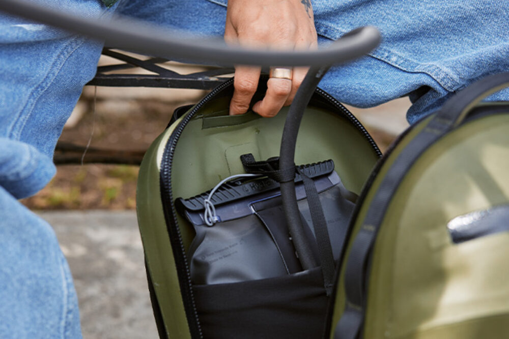 相較Panga收納空間少,Cayo多了不少貼心設計!頂部有個小拉鍊袋,剛好放鑰匙或手機;前面的拉鍊袋夠大,能塞進700毫升的保溫瓶(不過看照片可能塞不下更大的)。這兩個袋子都有防潑水內襯,就算水壺漏水或放濕衣服也不怕弄髒其他東西。主隔層超大,還附兩個彈性織袋,能放筆電、水袋等,連喝水管的出口都有設計好,超適合戶外活動。可惜的是,沒專屬筆電隔層,想找完美防水的筆電背包可能要再等等。