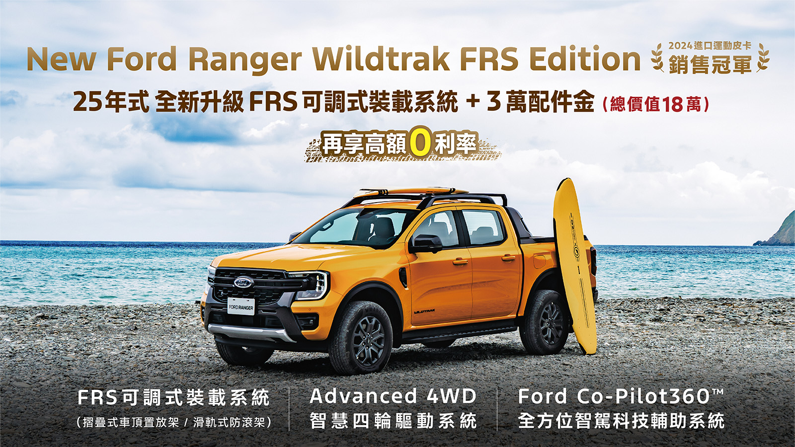 全車系優惠包含Kuga舊換新享86.9萬元起,指定車型再享大方送6萬豪禮及5年不限里程原廠保固;全新年式Focus 75.9萬起(含舊換新)重磅升級,領先同級搭載FAPA主動式停車輔助系統2.0,全車系大方送3萬元配件金,再享5年不限里程原廠保固;德製性能鋼砲Focus ST 25年式,先馳德點享148.9萬元起;Tourneo Connect福特旅玩家享高額0利率,再加碼5年不限里程原廠保固;Ranger全新25年式車型Wildtrak FRS Edition,升級FRS可調式裝載系統,並享3萬元配件金,提供總價值18萬元的配備升級幅度,再享高額0利率優惠。盛夏超值購車優惠限時開跑中,敬請把握機會輕鬆入主Ford好車,讓Ford陪您暢享夏日駕馭樂趣。