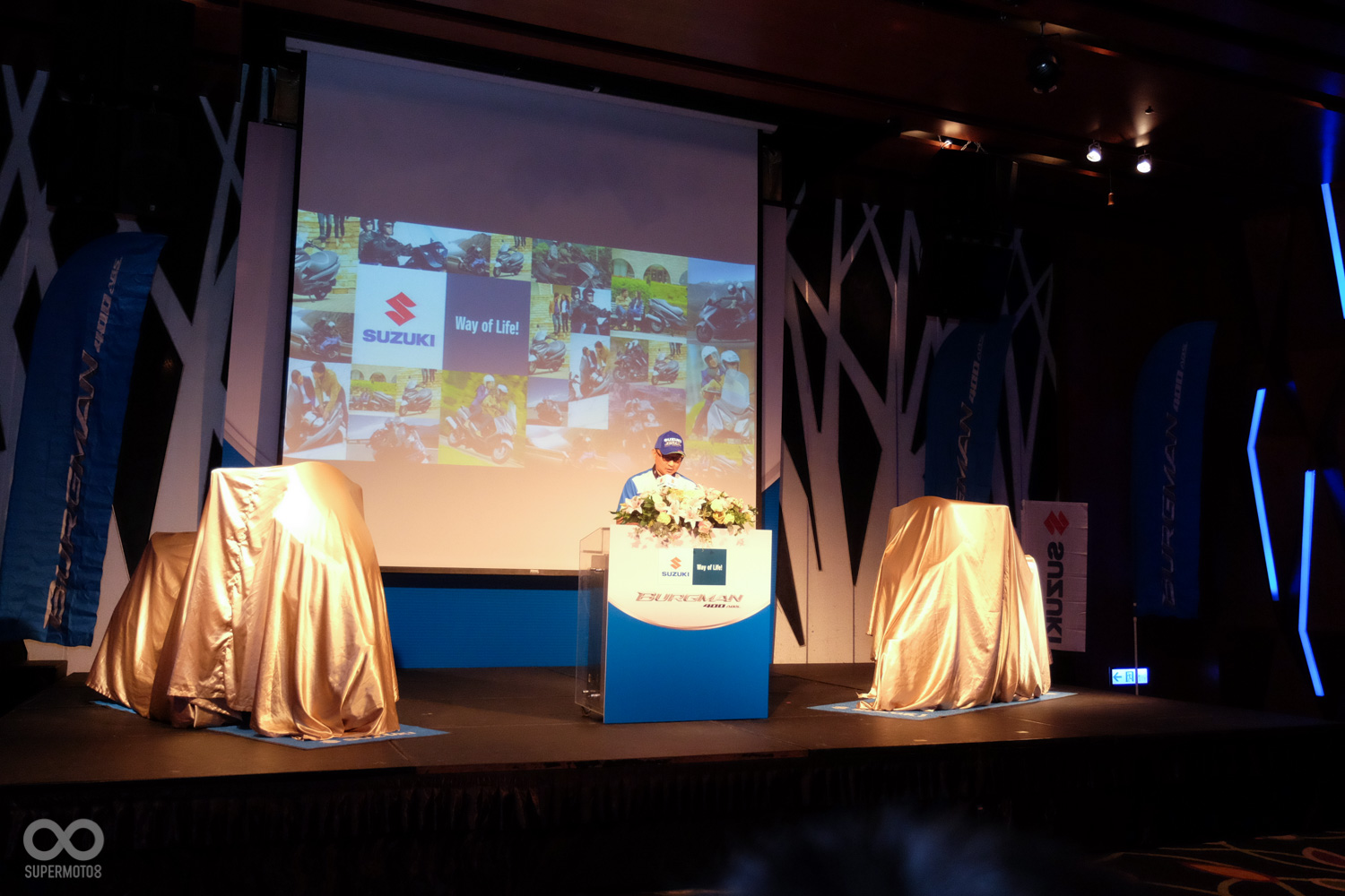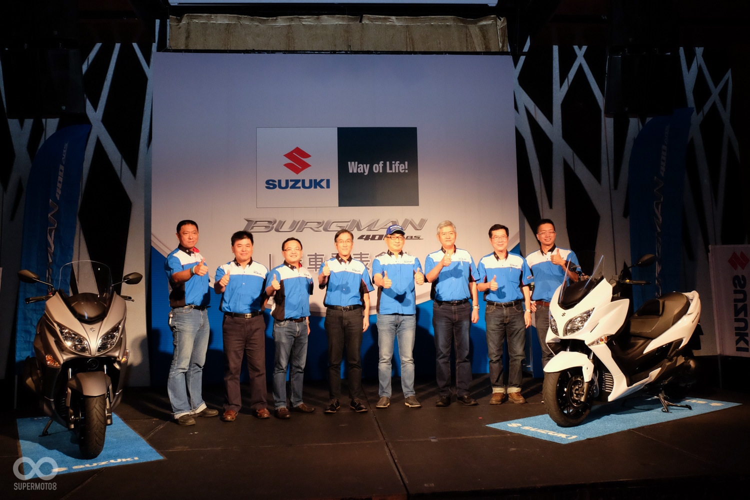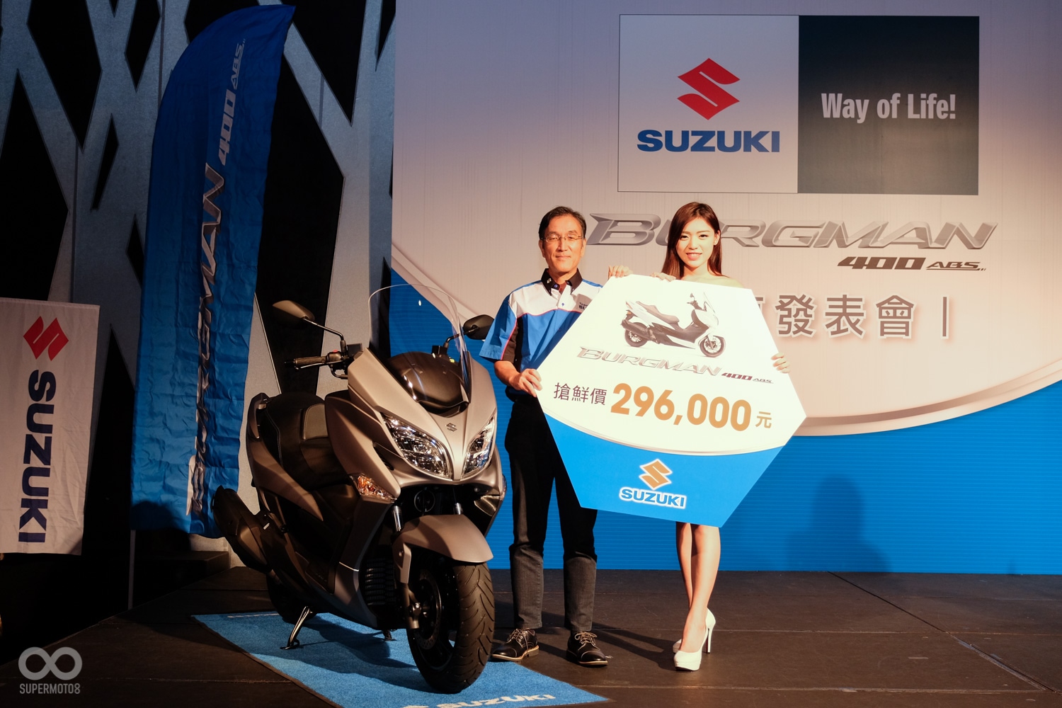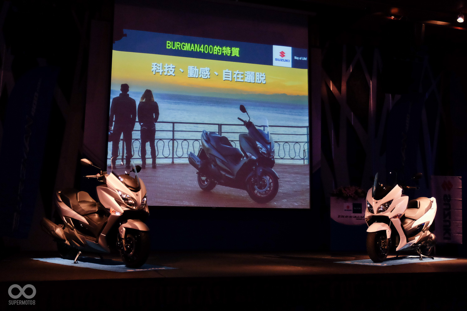 米蘭車展中SUZUKI發表了旗下長青車款BURGMAN400闊別十年的全新大改款,而一個月前SUPERMOTO8也獲邀參加了台鈴機車所舉辦的AN400在台搶先見面會,優雅動感的造型引起了許多迴響,而今日(5/25)台鈴機車也在台北舉辦了BURGMAN400的正式發表會,同時台灣也是全球第一個發售AN400的國家。