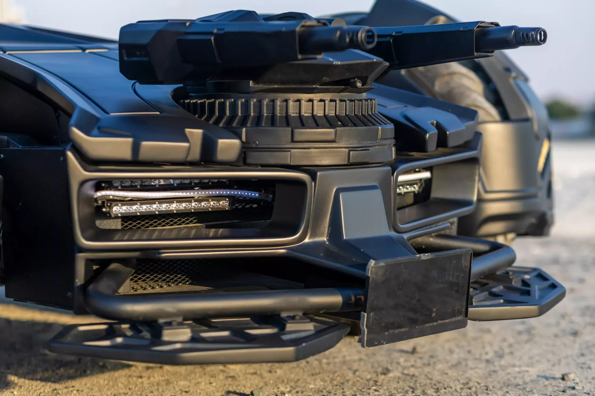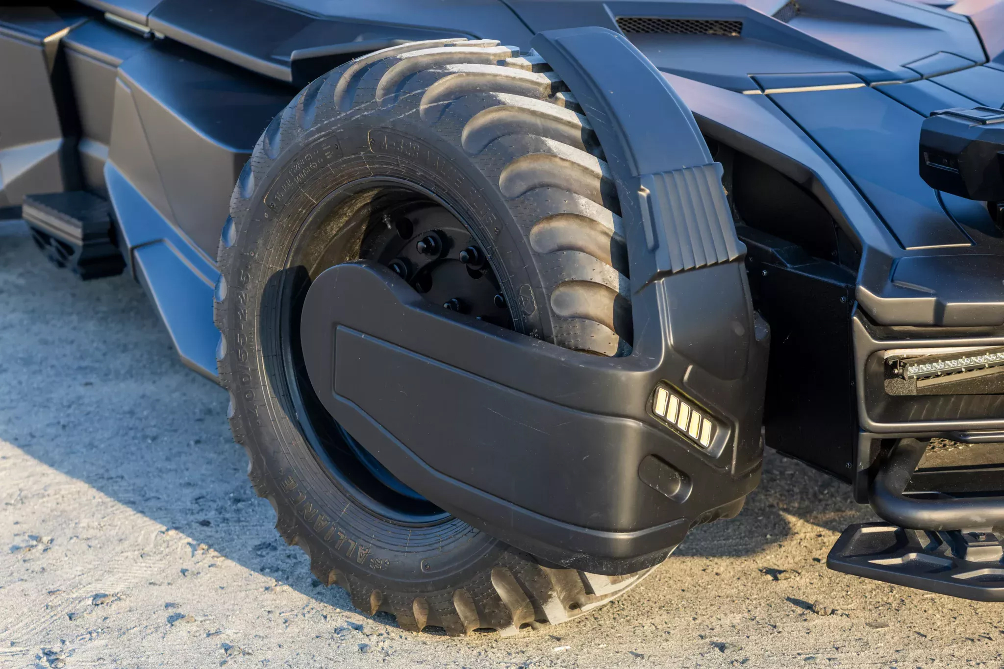 與坊間常見、刻意模仿電影中Batmobile造型的仿作不同,這台車走出自己的風格路線,完全獨立設計車體,外觀造型未有明顯電影元素,卻更具「蝙蝠氣息」。車身採用輕量化複合材料打造,並換上 22.5吋巨型鋁圈與重型越野胎,視覺衝擊感十足。