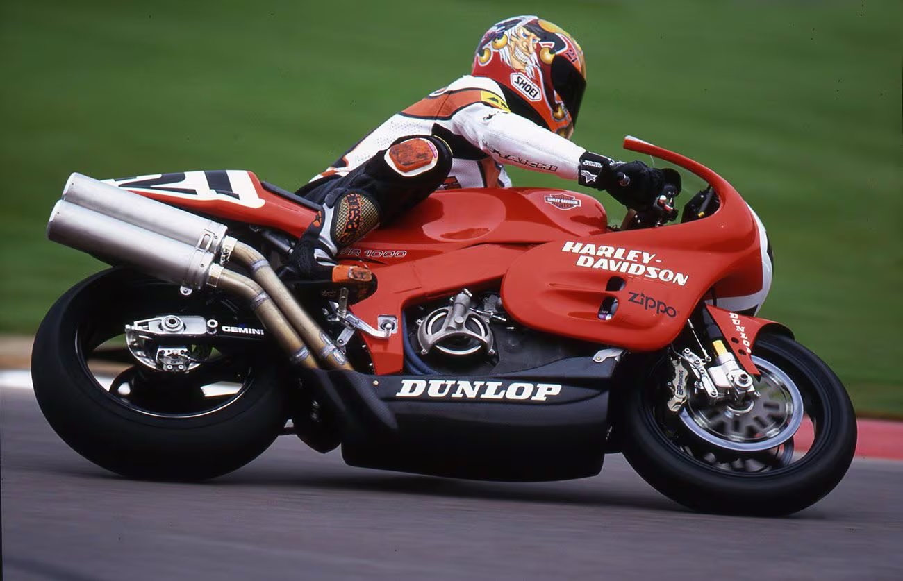 當時 Ducati 憑著 V-Twin 車款在世界超級摩托車錦標賽(WSBK)擊敗四缸日系車,激起了 Harley 重返賽道的野心。與其小步嘗試,Harley 一口氣打造了 996c.c. 的全新賽車引擎,規格與 Ducati、Britten 等名機齊肩。