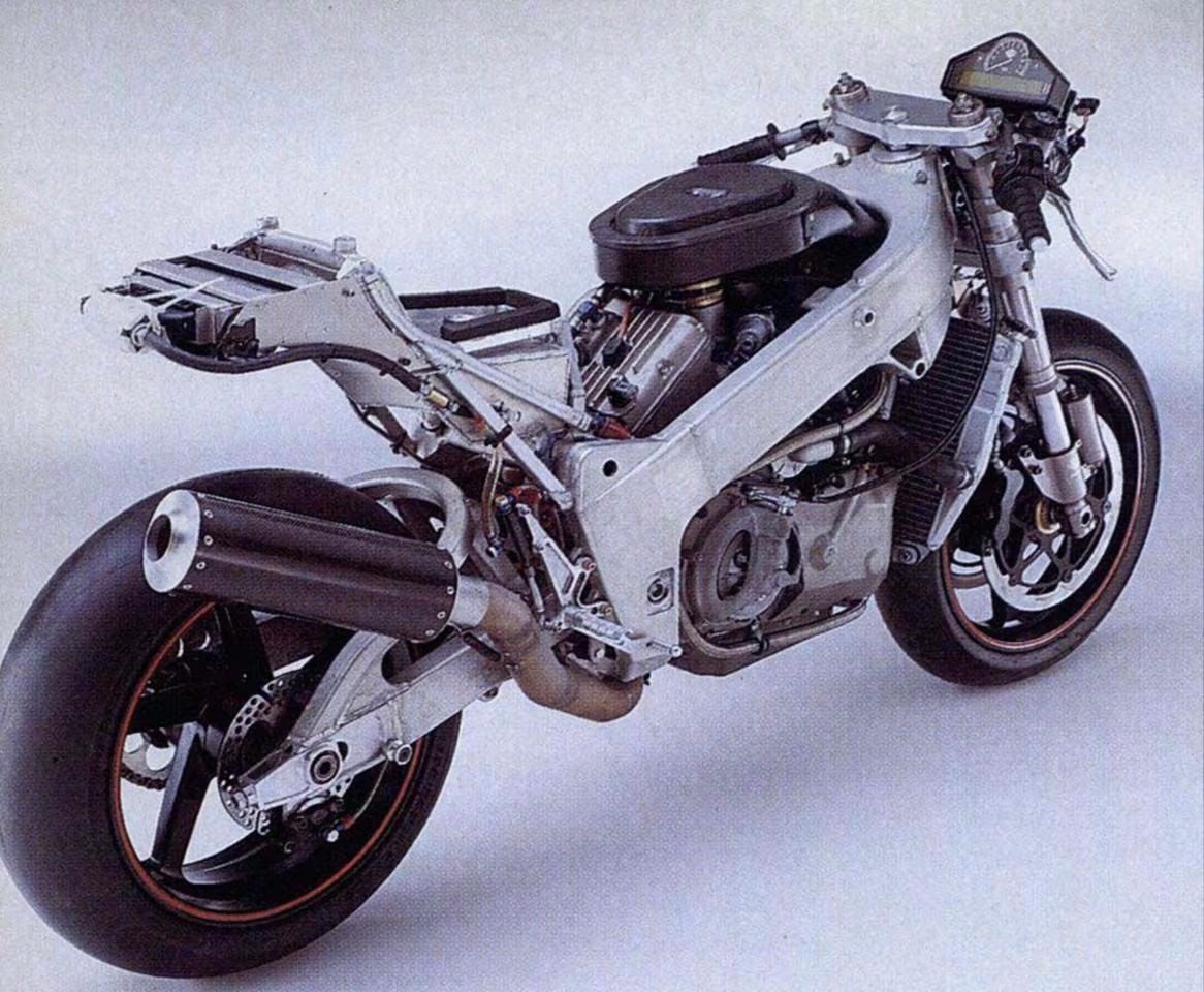 VR1000 搭配雙鋁合金樑式車架,配置 24.5 度前叉傾角與 55.5 吋軸距,是具競賽潛力的底盤設計。但初期試車不斷發生問題:從油泵熔斷、汽缸頭積油、氣門損壞,到避震硬如石板等,各種機構磨合困難接連而來。甚至曾有工程師用現成零件拼湊出 Daytona 賽前的測試車,可說是一場永無止盡的災難排除挑戰。