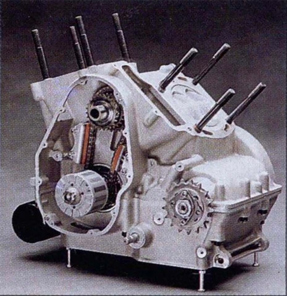 為了解決傳統 45 度 V 型雙缸的活塞碰撞問題,VR 採用 60 度夾角設計並使用長連桿;結構上,前汽缸還被旋轉至更直立位置以利車體重心配置。引擎採用鍛造 4340 鋼單件曲軸、氣冷鋁合金濕式汽缸套與 Cosworth 式燃燒室,由 Roush 團隊操刀氣門設計。每缸四汽門、壓縮比設計為 12:1,點火與噴油系統由 Marelli 控制。