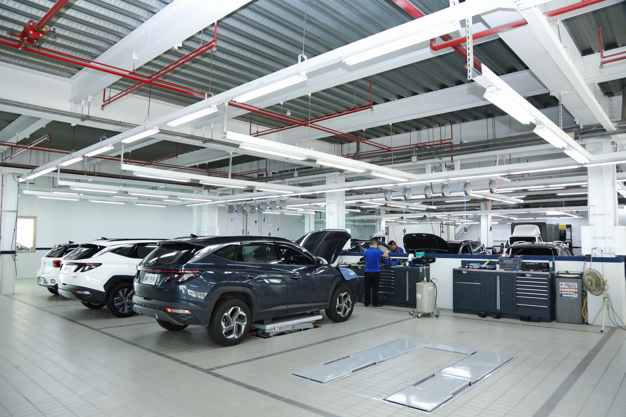全新東台南展示中心及服務廠共佔地1,200坪,整體空間大幅升級。展間設計遵循HYUNDAI全球品牌CI標準,風格簡約現代,空間寬敞明亮,最多可展示6台展車,滿足消費者多元車款比較與賞車體驗需求。展示空間亦導入「We Care 3.0顧客服務體驗」,配備大型電子看板、Villa級香氛系統與Nespresso精品級咖啡服務,營造高品質、具沉浸感的賞車氛圍,讓每位蒞臨顧客皆能享有尊榮舒適的到店體驗。