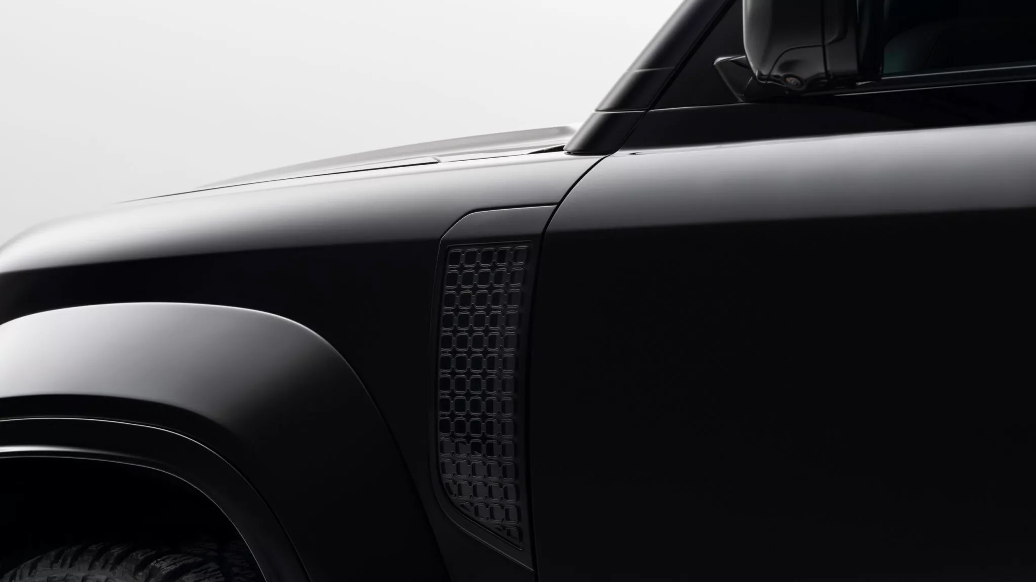 OCTA Black 以 Defender 系列中最深邃的「Narvik Black」作為標準車色,不同於一般烤漆的光澤處理,車主還可選配 啞光防護膜,進一步提升低調殺氣。全車多達 30 項外觀細節採用亮黑或霧黑處理,包括霧黑防滑護板、霧黑拖車勾、四出亮黑排氣尾管,以及暗銀色的「DEFENDER」字樣徽飾。
