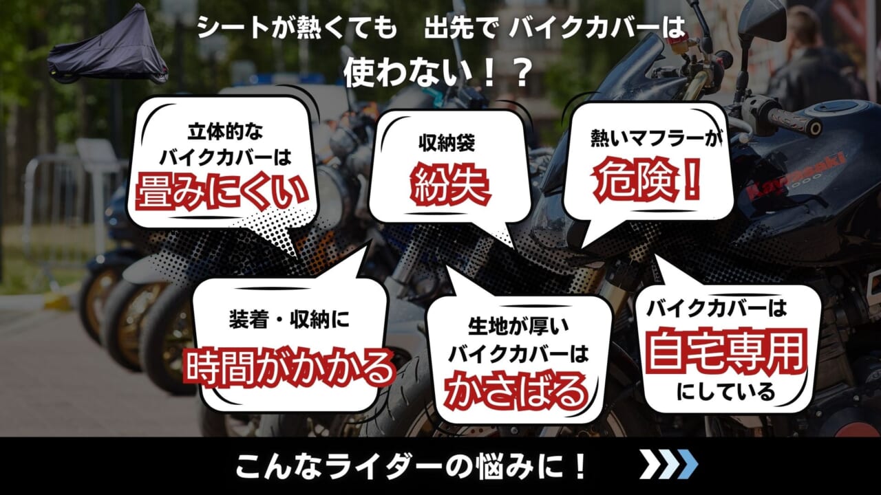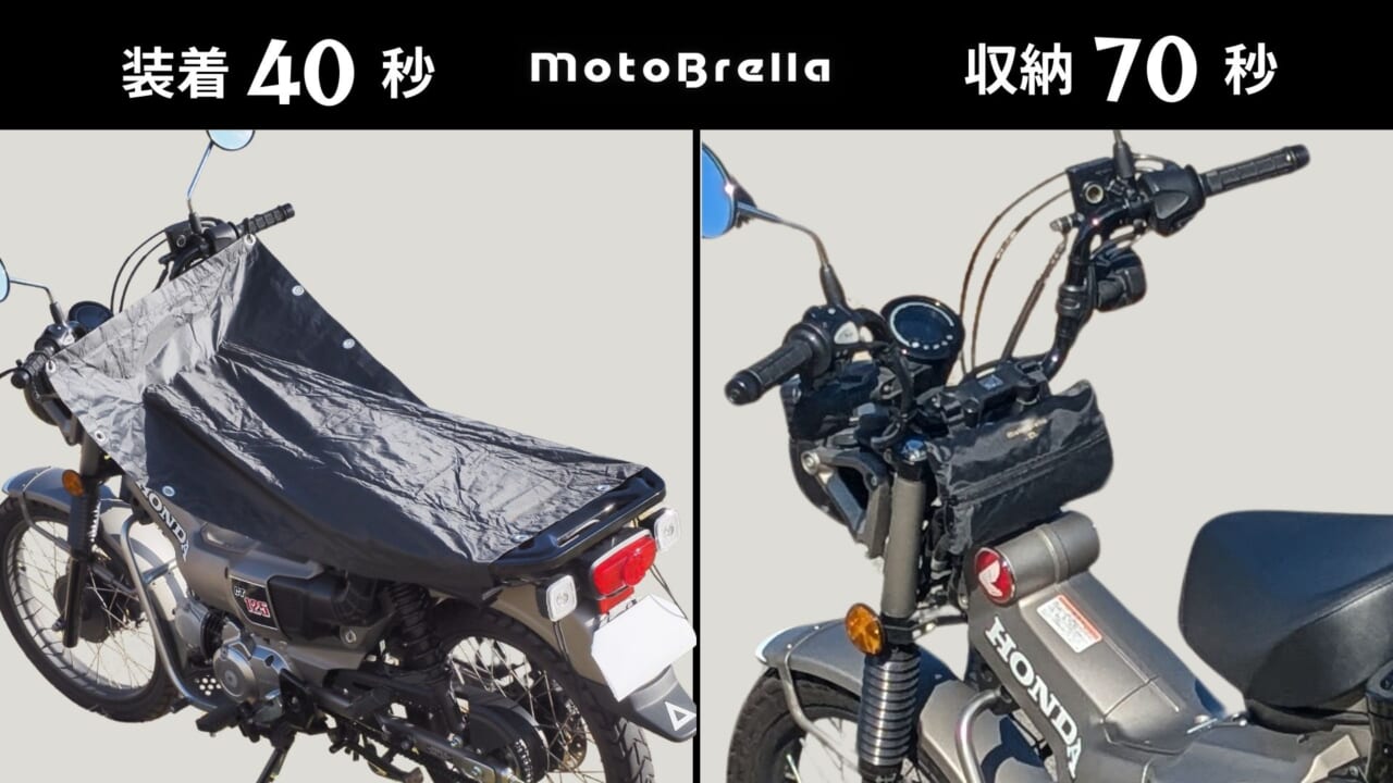 「MotoBrella」來自日本品牌 maaDeft,這個罩布最大亮點就是「小而強」,專門針對坐墊和油箱進行防護。它採用平面結構設計,只針對需要防曬的重點部位,不像一般立體車罩那麼麻煩、又大又佔空間。