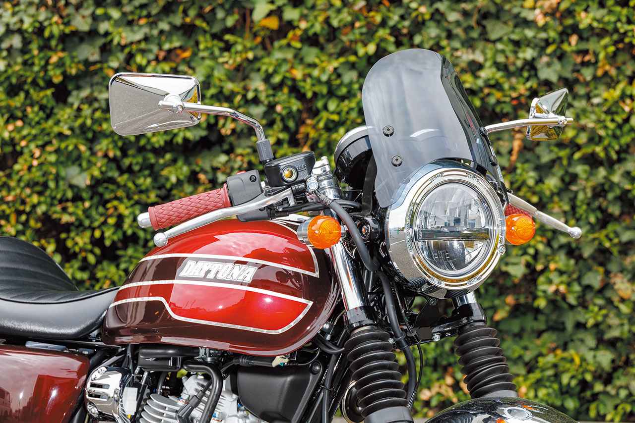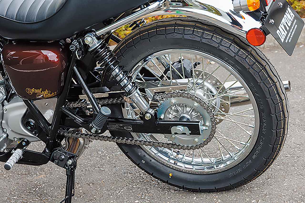 除此之外,Daytona 也在 W230 上加入了許多其他精心設計的改裝配件。比如可以向後調整 25mm 的多段可調腳踏,這樣的改裝可以讓騎乘者的姿勢更為舒適和個性化;一體化的皮革單座椅墊,搭配鍍鉻後土除,讓整台車的外型更加精緻有品味;車尾部分搭配鍊條護蓋與側蓋,讓後方看起來既簡潔又具有運動感。