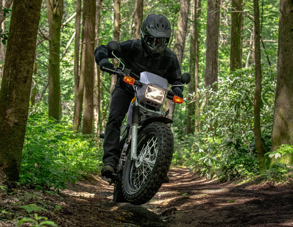 TW200 的名稱來自 “Trail Way”,顧名思義,這是一台為林道與無路地形設計的輕越野車。特色在於配上超寬的 氣球胎(fat tires),搭配輕巧的車架與穩定性極佳的低重心設定,即使在碎石、沙地等鬆軟地形也能維持良好的牽引力。搭載的 196c.c. 空冷單缸引擎雖不驚人,但卻以低轉扭力強、維修容易、可靠性高而受到北美市場的高度青睞。