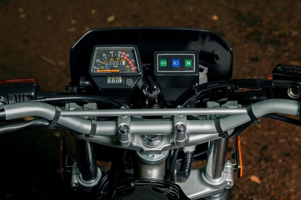 即使來到 2026 年式,TW200 的架構幾乎未變:依然是化油器供油、氣冷引擎、寬輪胎、低座高790mm、車重126kg。儀表板上甚至還保留著 1980 年代美國高速公路限速的「55mph 紅字刻度」——一切就像時間被封存,但卻依然實用、依然管用。