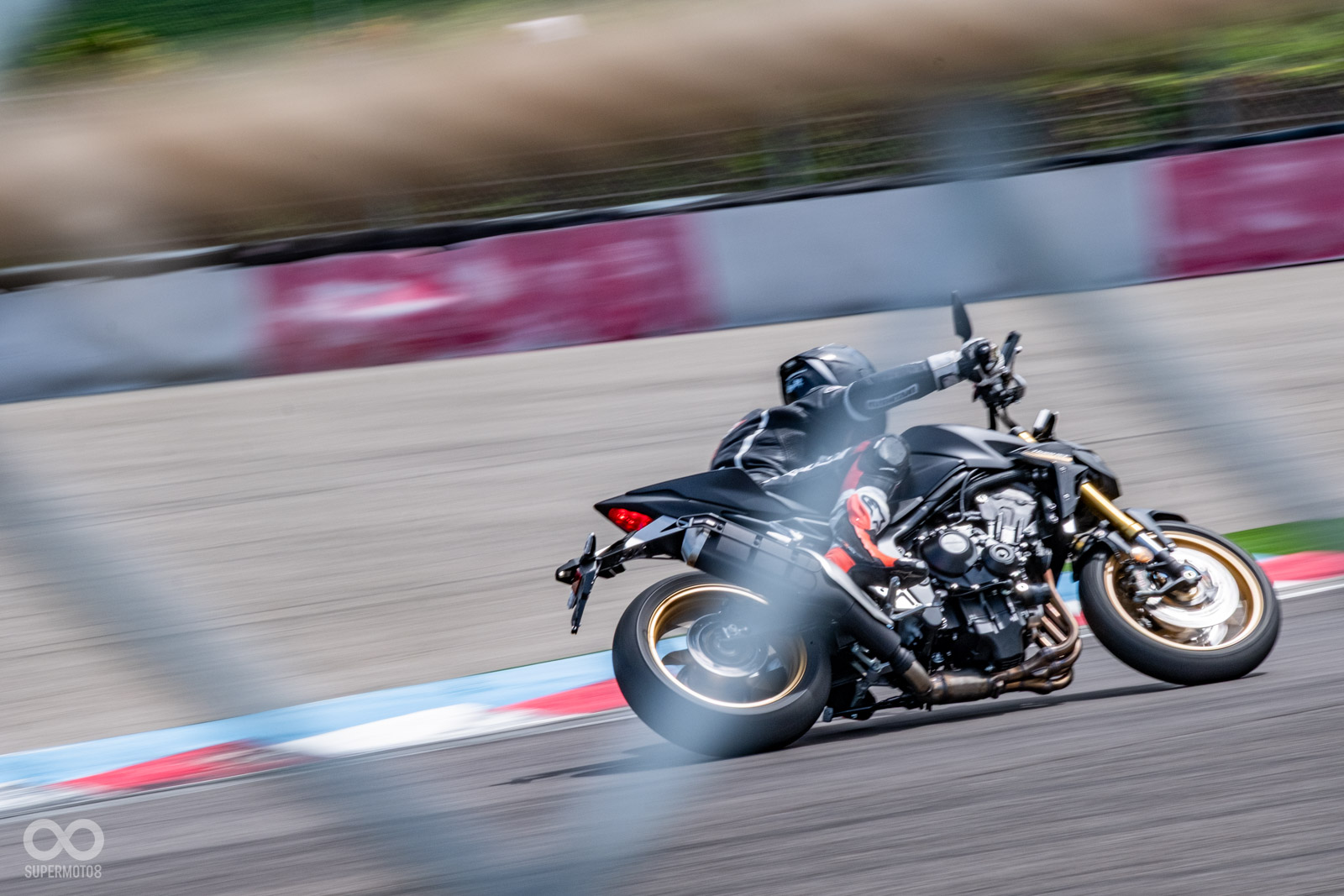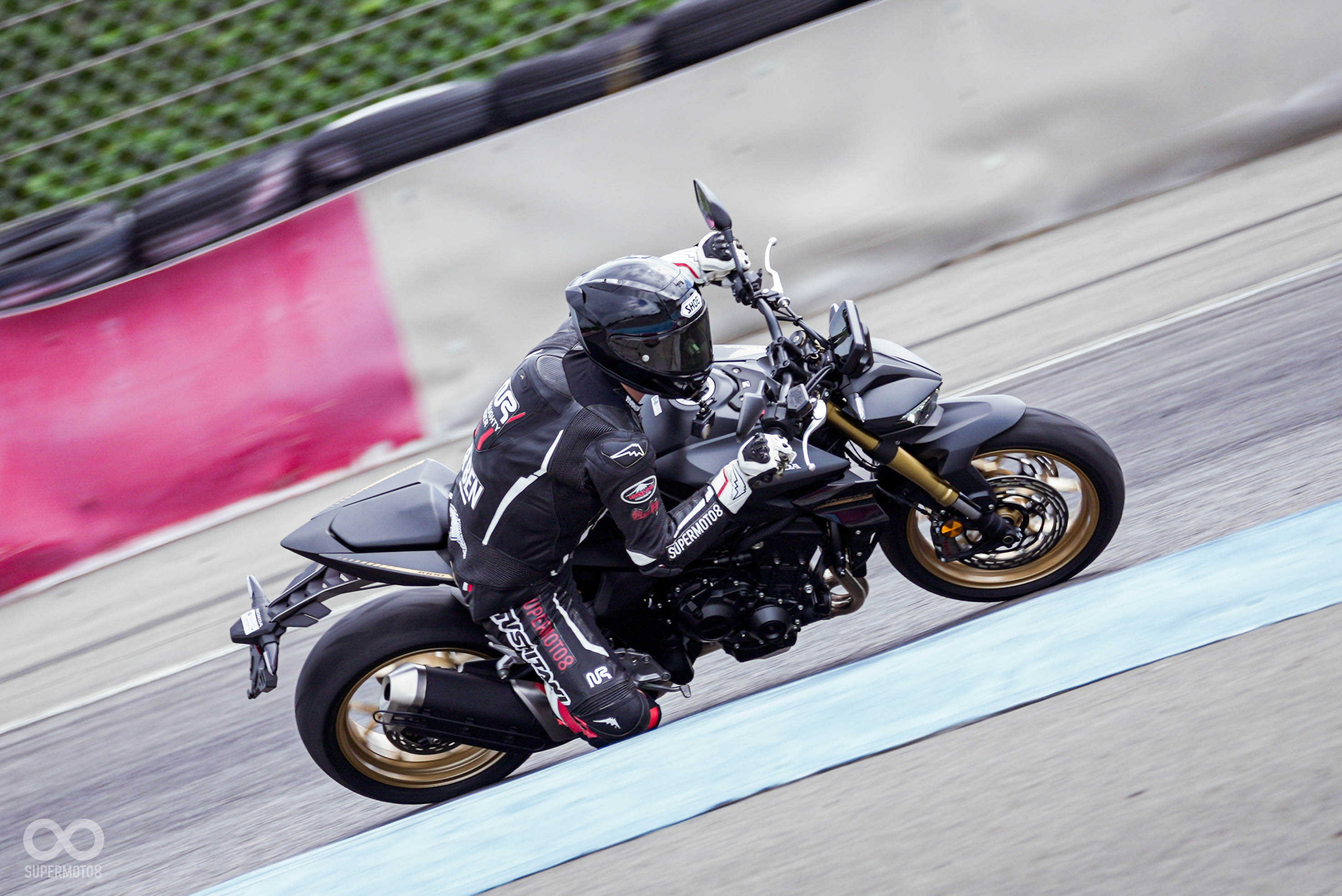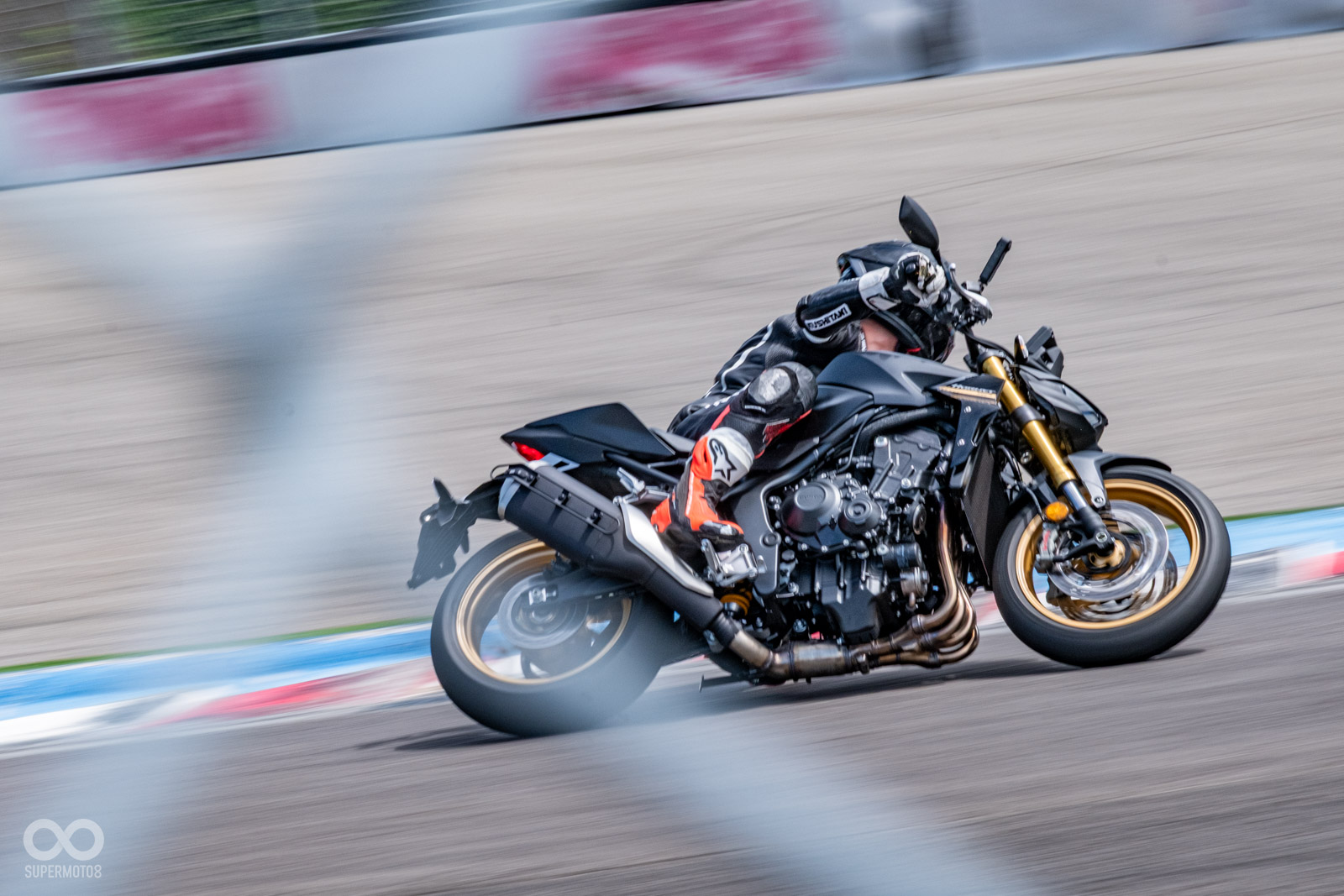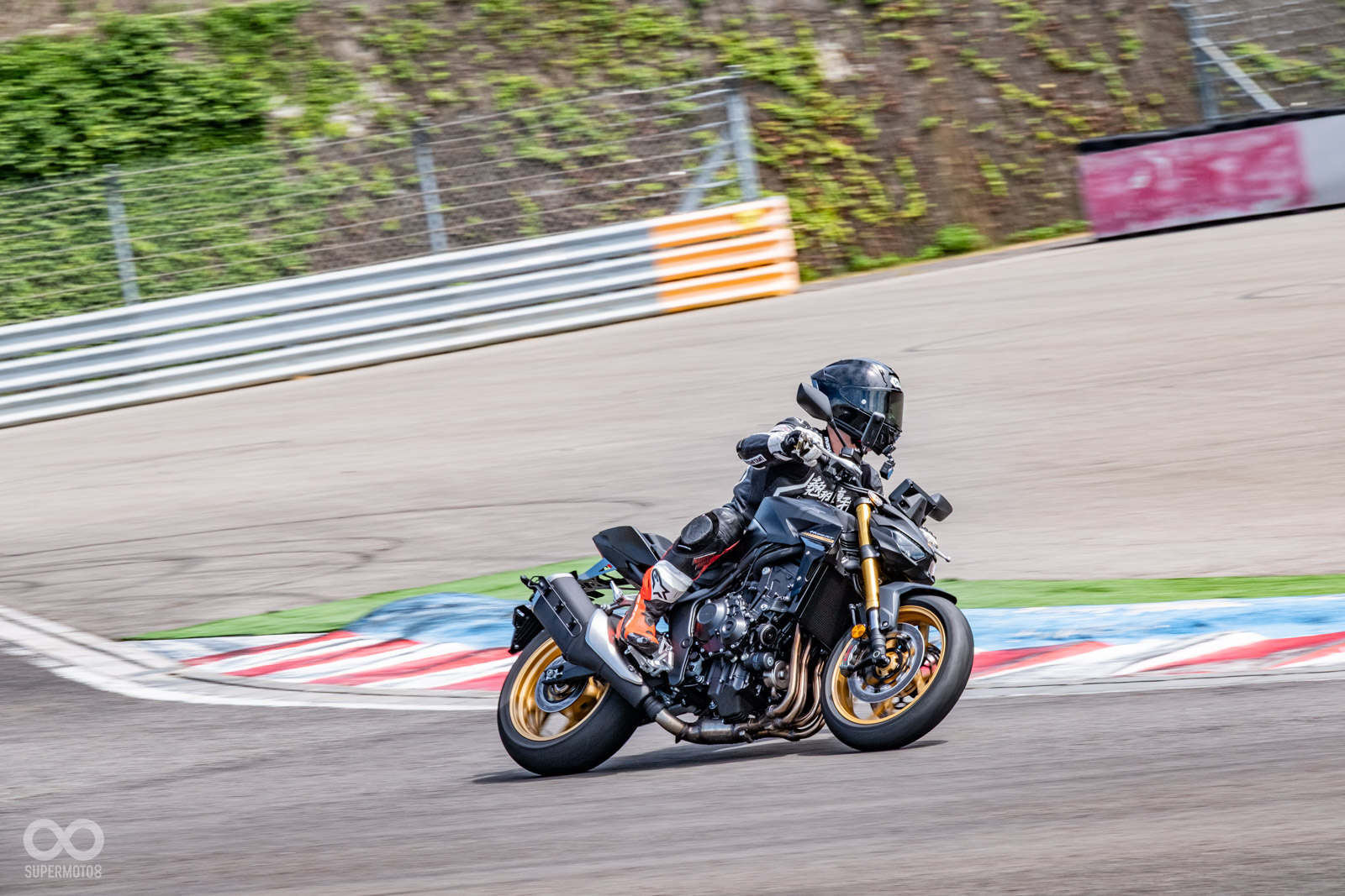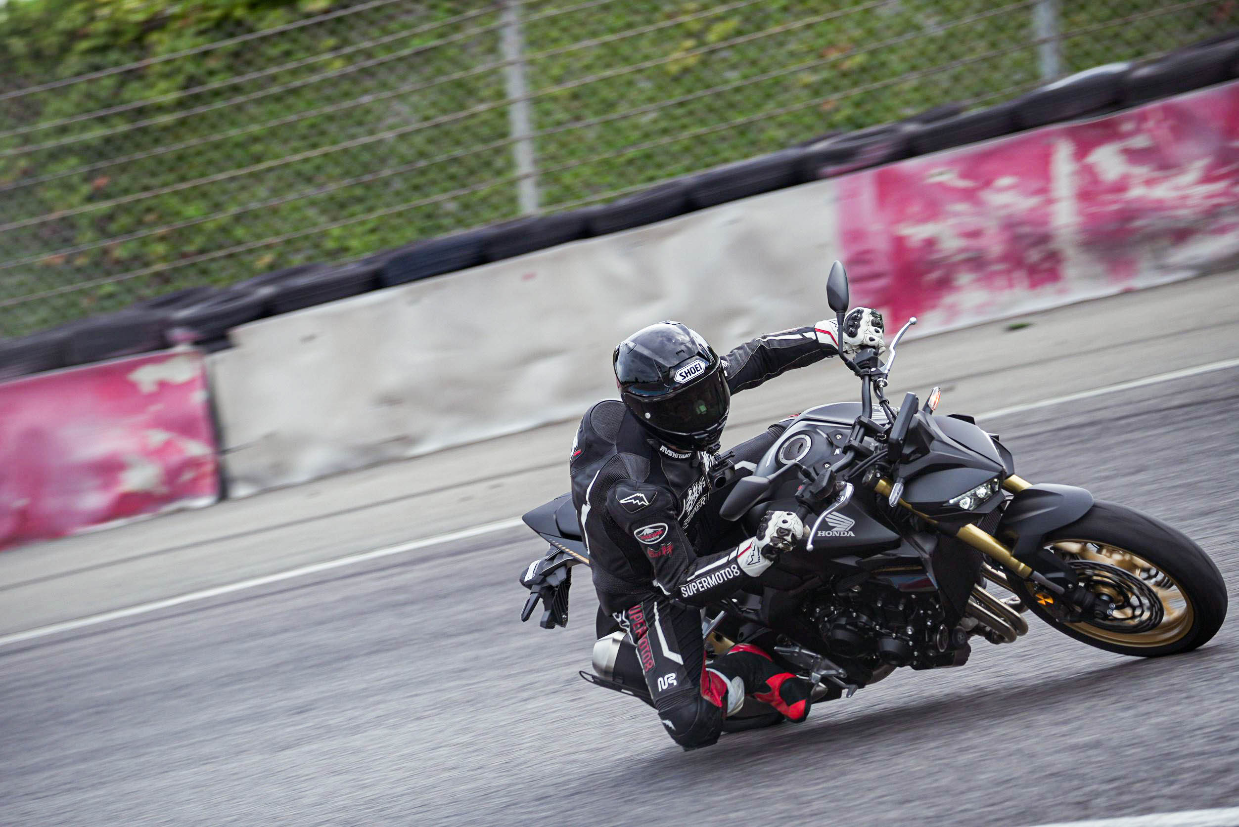 實際進入賽道後,CB1000 Hornet SP 給人的第一印象是「舒適卻不失戰鬥感」。座墊偏軟且平整,整體騎姿也算友善,不論是挺直上半身享受巡航,或者把屁股移後面一點就可以立刻頂到後端坐墊,切換成戰鬥騎乘座位。剛進賽道時,即便速度不快,它的動力曲線依舊相當溫和,引擎震動與聲浪也相當安靜,速度不快的狀態下傾倒反應相當溫和,不會有過度激進的下墜感,加上圓滑胎型帶來自然的傾倒感,對一般騎士來說相當容易上手。