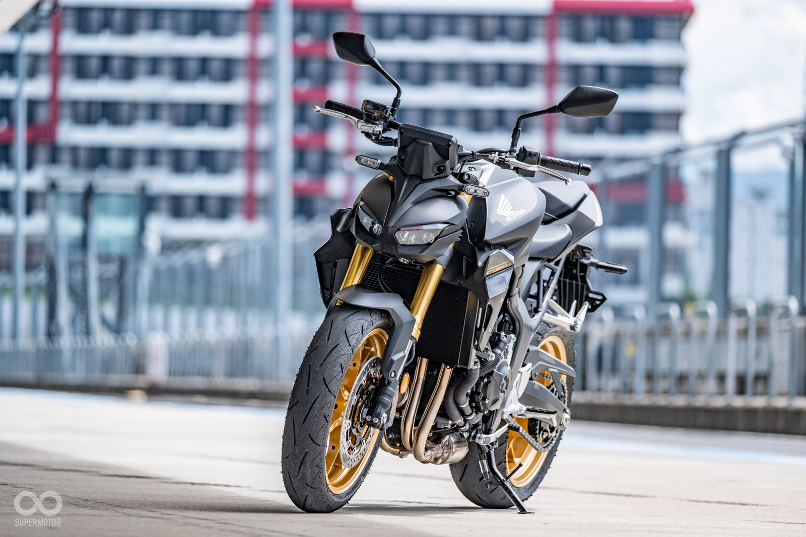 制動部分搭載 Brembo Stylema 四活塞徑向卡鉗,對應 310mm 浮動碟,後煞車則是 240mm 碟盤搭配 Nissin 卡鉗。前後五 Y 輻式鑄鋁輪圈靈感來自 CBR1000RR-R Fireblade,搭配 120/70-ZR17 前胎與 180/55-ZR17 後胎,展現十足戰鬥格局。