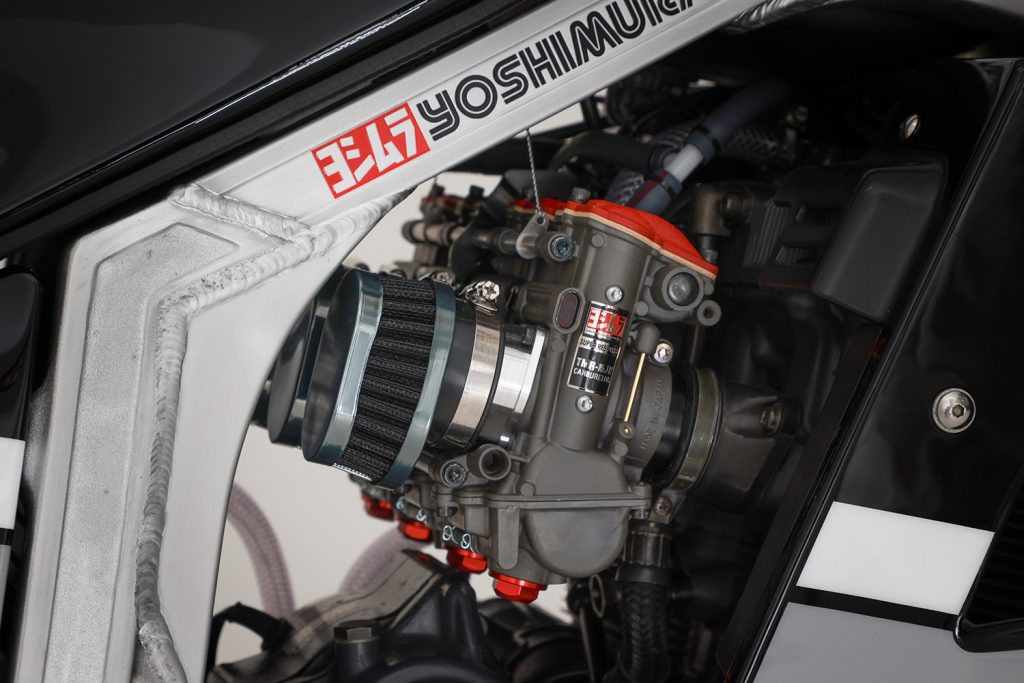 外觀上,它搭載 Yoshimura Heritage Parts 系列專屬零件,包括 Cyclone 全段排氣、可調懸吊與高性能煞車。動力部分,氣缸頭經過精細導流,並改裝上 Mikuni TMR MJN32 化油器組,徹底釋放四缸引擎潛能。