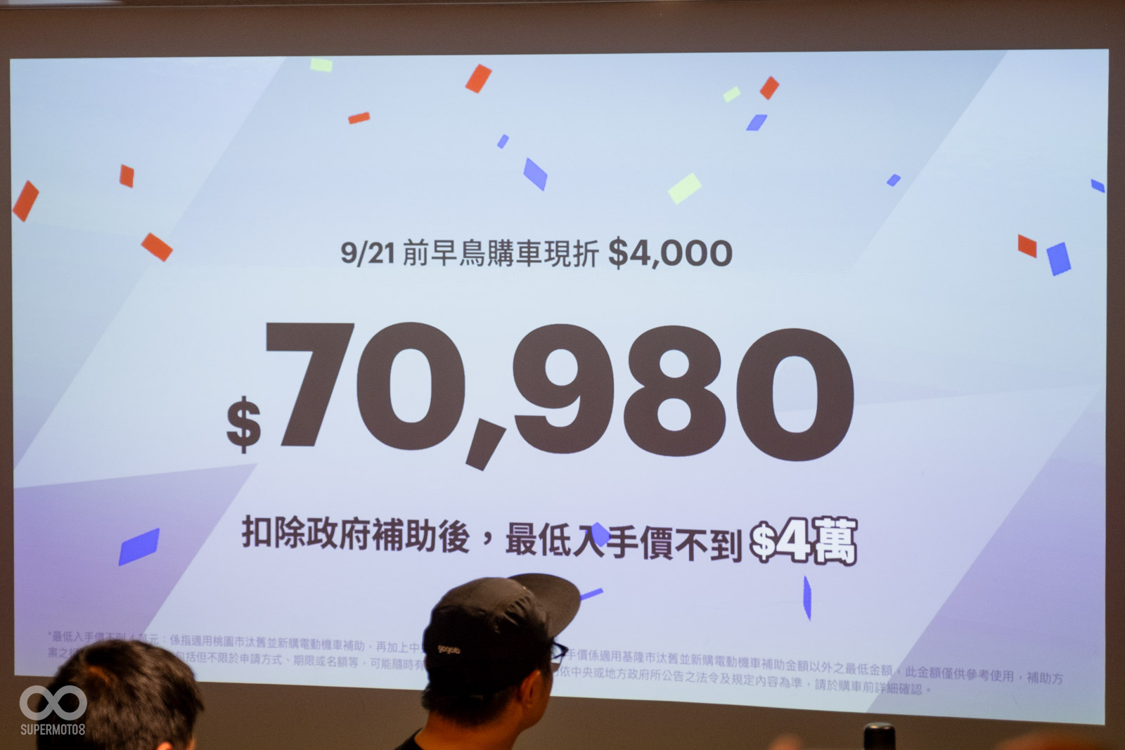 Gogoro EZZY 500 建議售價為 NT$74,980,搭配政府補助後最低不到 NT$40,000 就能入手。品牌還加碼祭出 早鳥優惠:即日起至 9/21,購車可再享 現折 NT$4,000。