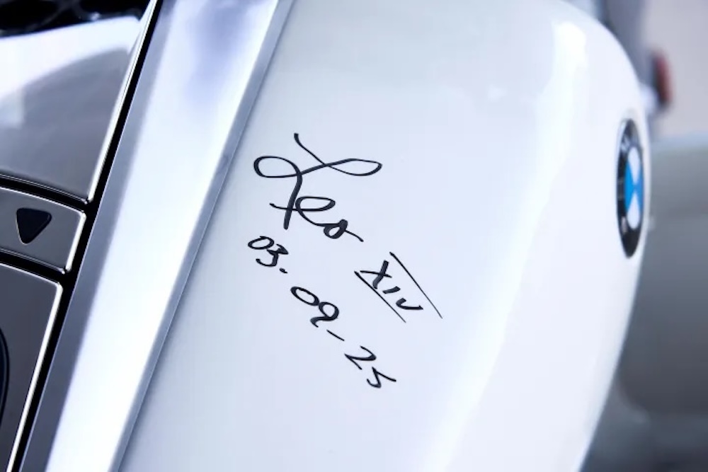 最高潮出現在 9 月 3 日,BMW Motorrad 執行長 Markus Flasch 與 BMW 德國部門主管 Michael Sommer,親自將這台 R 18 送到梵蒂岡。教宗 Leo XIV 在公開接見後,親手為這台車祝福並簽名,讓它不只是藝術品,更成為世界獨一無二的信仰象徵。