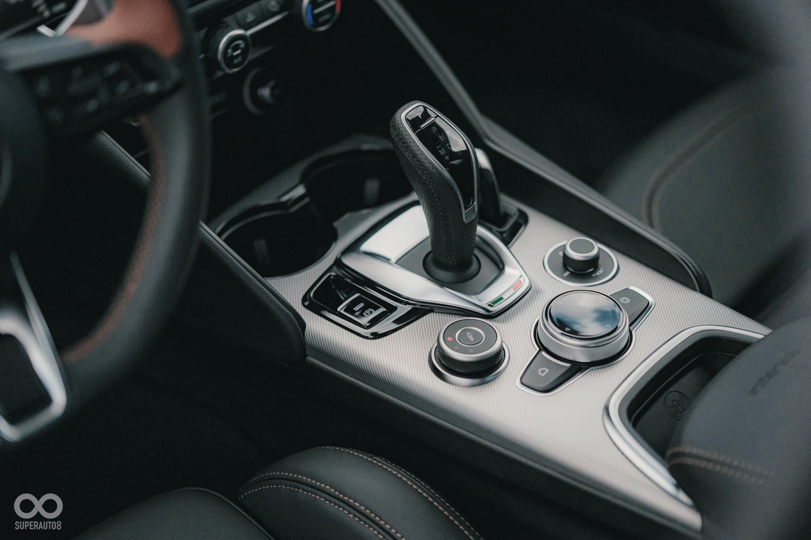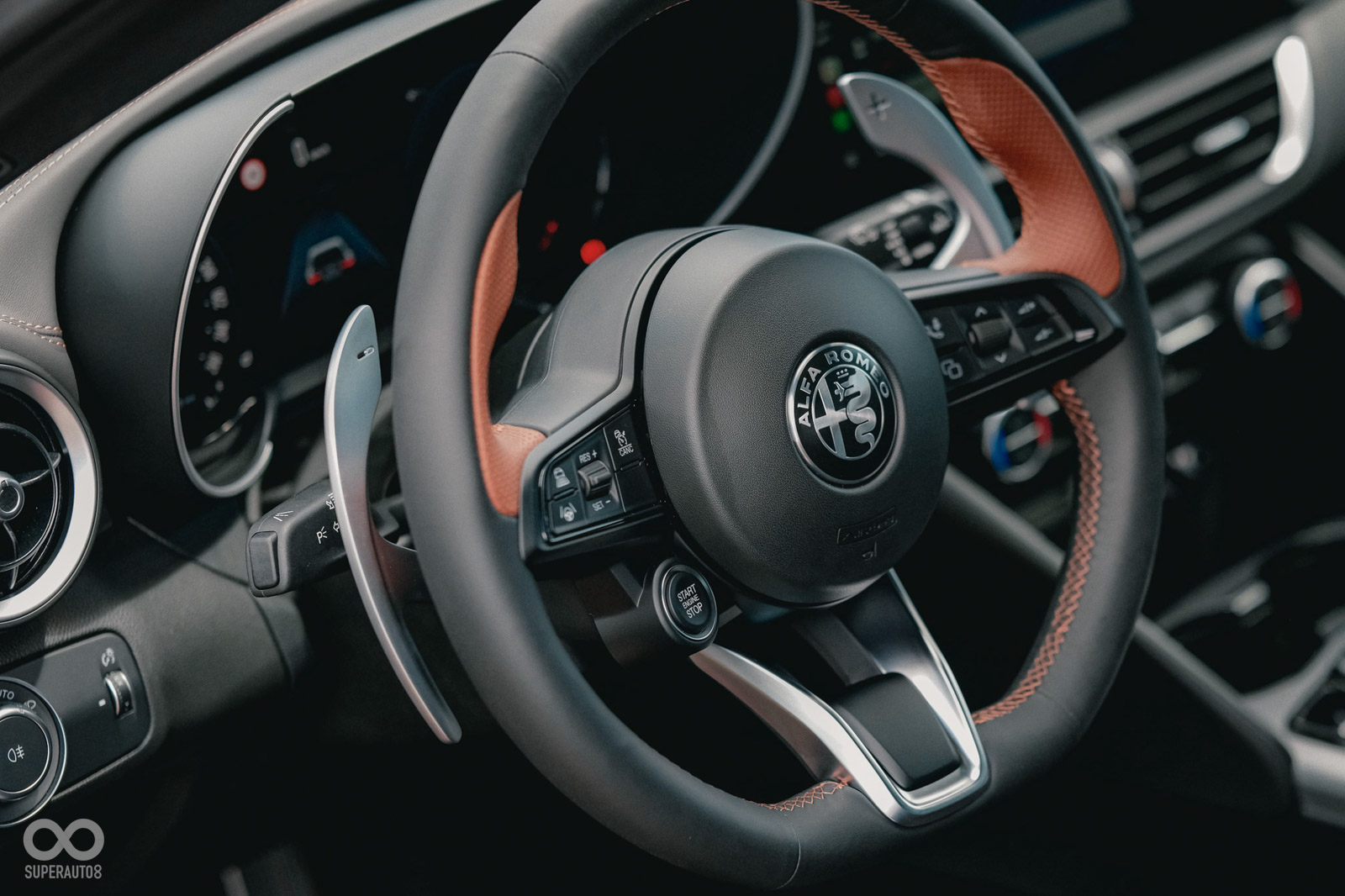 Intensa 與 Sprint 同樣搭載 2.0L 渦輪增壓直列四缸引擎,輸出 280hp/400Nm,0-100km/h 加速僅需 5.2 秒。搭配 ZF 八速手自排變速箱,齒比綿密、換檔流暢,透過方向盤後方那對誇張巨大的鋁合金換檔撥片操作,更是讓人欲罷不能。全車系標配 Q4 主動式四驅系統 與碳纖維傳動軸,確保在各種路況下都能提供穩定循跡。