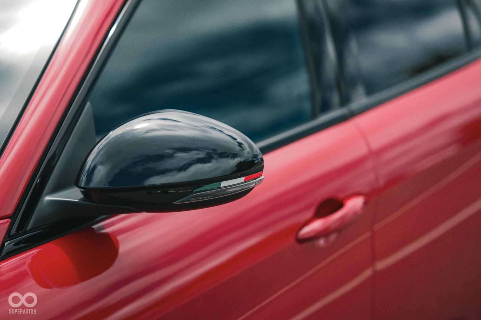 第一眼望去,Giulia Intensa 就像是一件義大利雕塑。家族經典 Scudetto 盾型水箱護罩 搭配三葉式 LED 矩陣頭燈,勾勒出鮮明且浪漫的義式線條。試駕車配備 19 吋亮黑鋁圈,加上專屬 Intensa 徽飾與義大利三色國旗後視鏡飾板,細節處處散發獨特氣質。車身折線在光影下流轉,就像是一場速度與藝術的辯證,低調卻絕對搶眼。