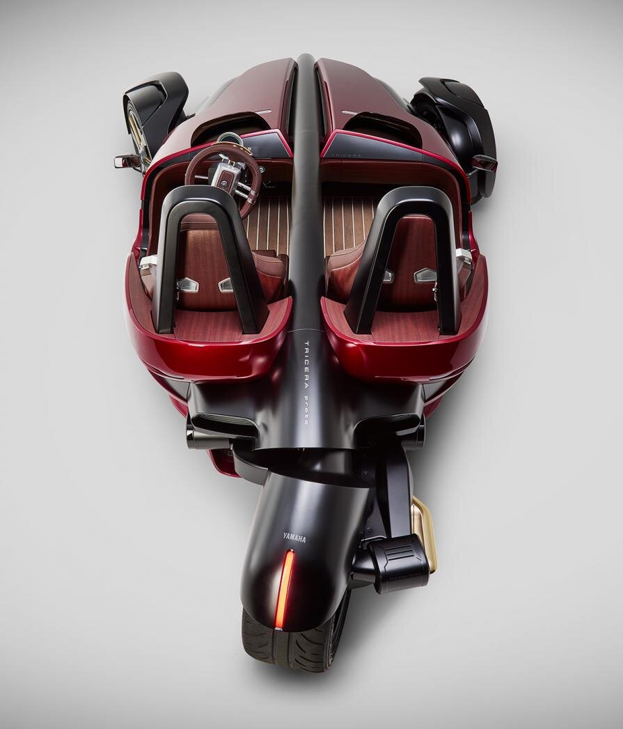TRICERA proto 採用 3WS 三輪轉向系統,不僅能提供傳統雙輪車難以達成的穩定性,還能透過前後輪協同轉向,創造快速靈敏的過彎反應。Yamaha 將人因研究導入轉向控制邏輯,讓車輛不只是跟著方向盤動,而是能「讀懂駕駛的節奏」,帶來近乎同步的身體連結感。