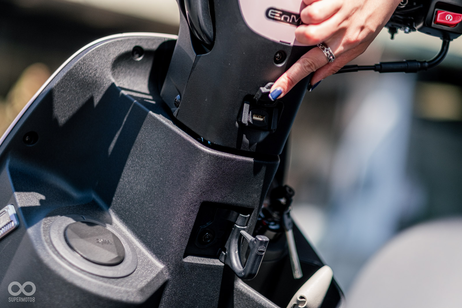 另外過往 CLBCU 就有的 QC 3.0 快充插孔與光感應彩色儀表,雙色防抓椅墊、22.5L 的車廂容量(可輕鬆放入 3/4 安全帽)等細節依舊完整保留,實用性依然無敵。