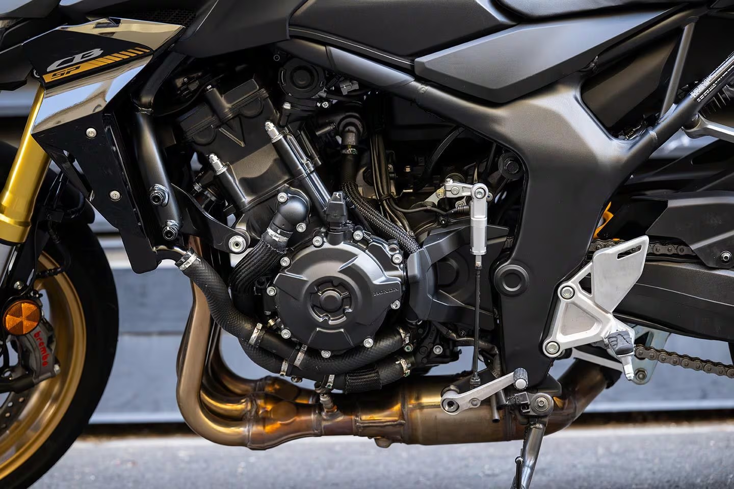 最令人驚豔的規格是 CB1000GT 的車身重量。在多加了車殼、長行程懸吊等配置後,其裝備重量僅為 213kg,與 CB1000 Hornet 的 211kg 相比僅微幅增加,體現了 Honda 在輕量化工程上的卓越能力。