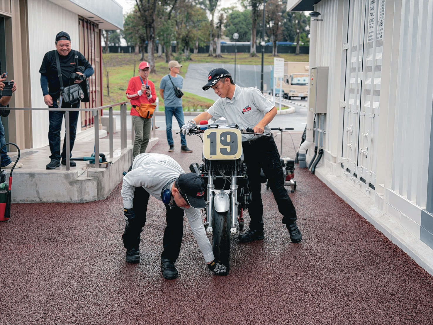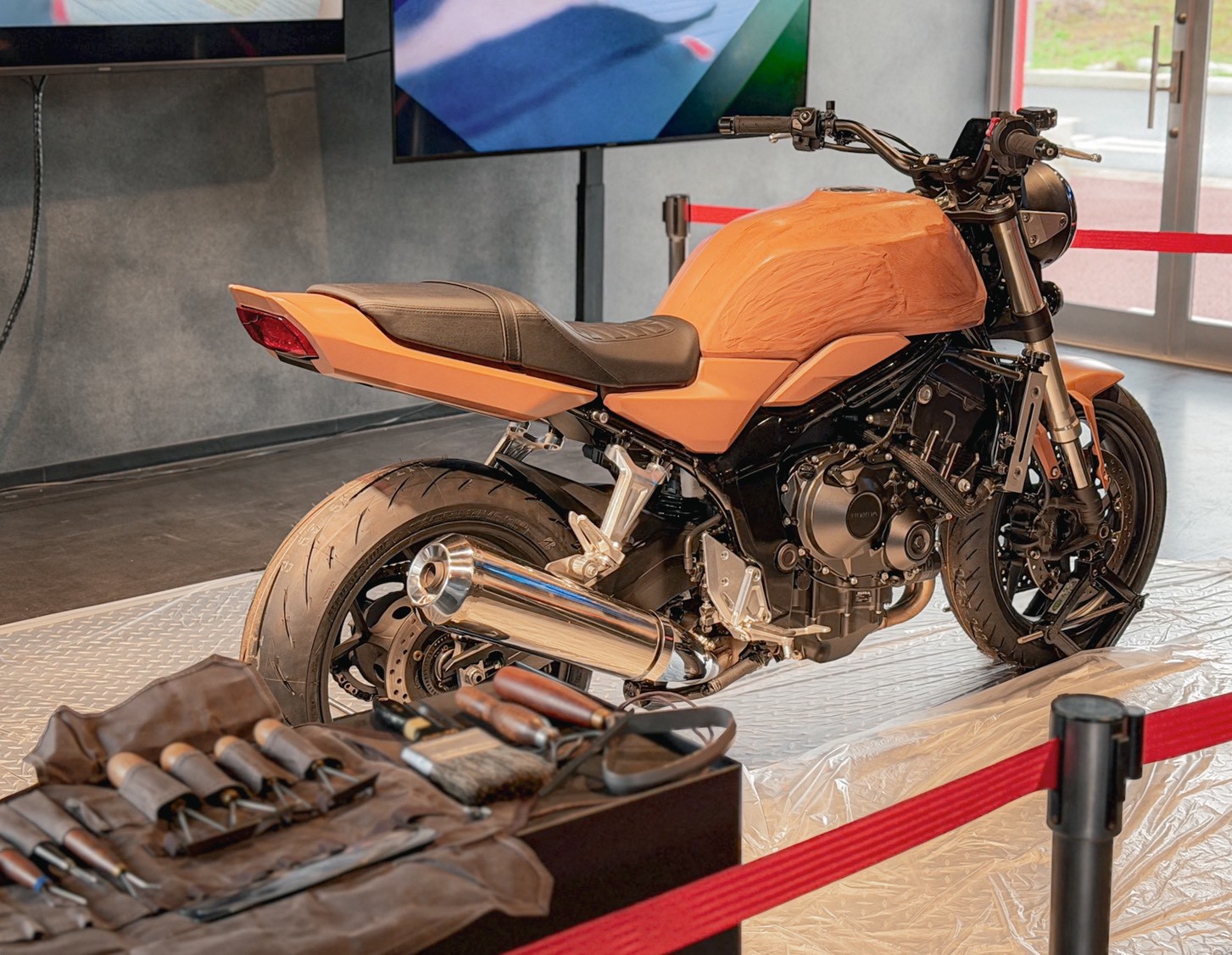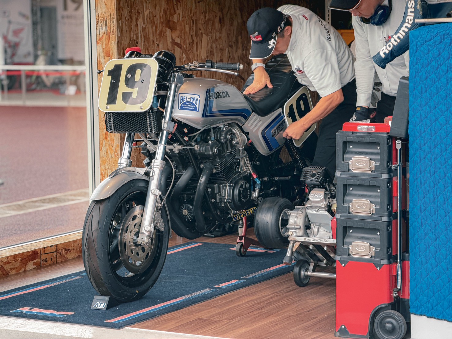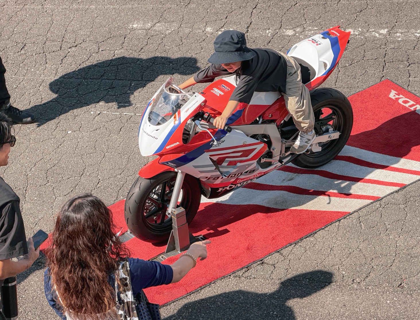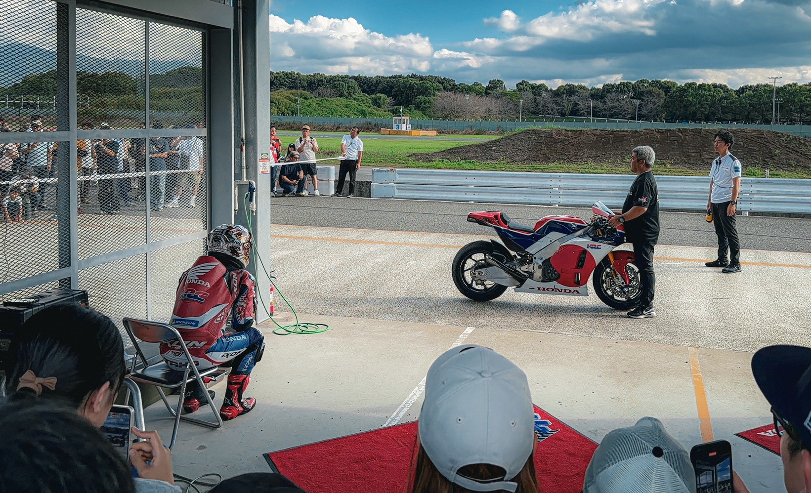 廠區內有小型園遊會,今年的重點當然是接近市售版的 CB1000F。現場不僅有各種版本展示,甚至還把它的「阿公」—— CB750 推出來發動,讓車迷們一飽耳福。整個活動設計得非常溫馨,充分展現了 Honda 的用心。