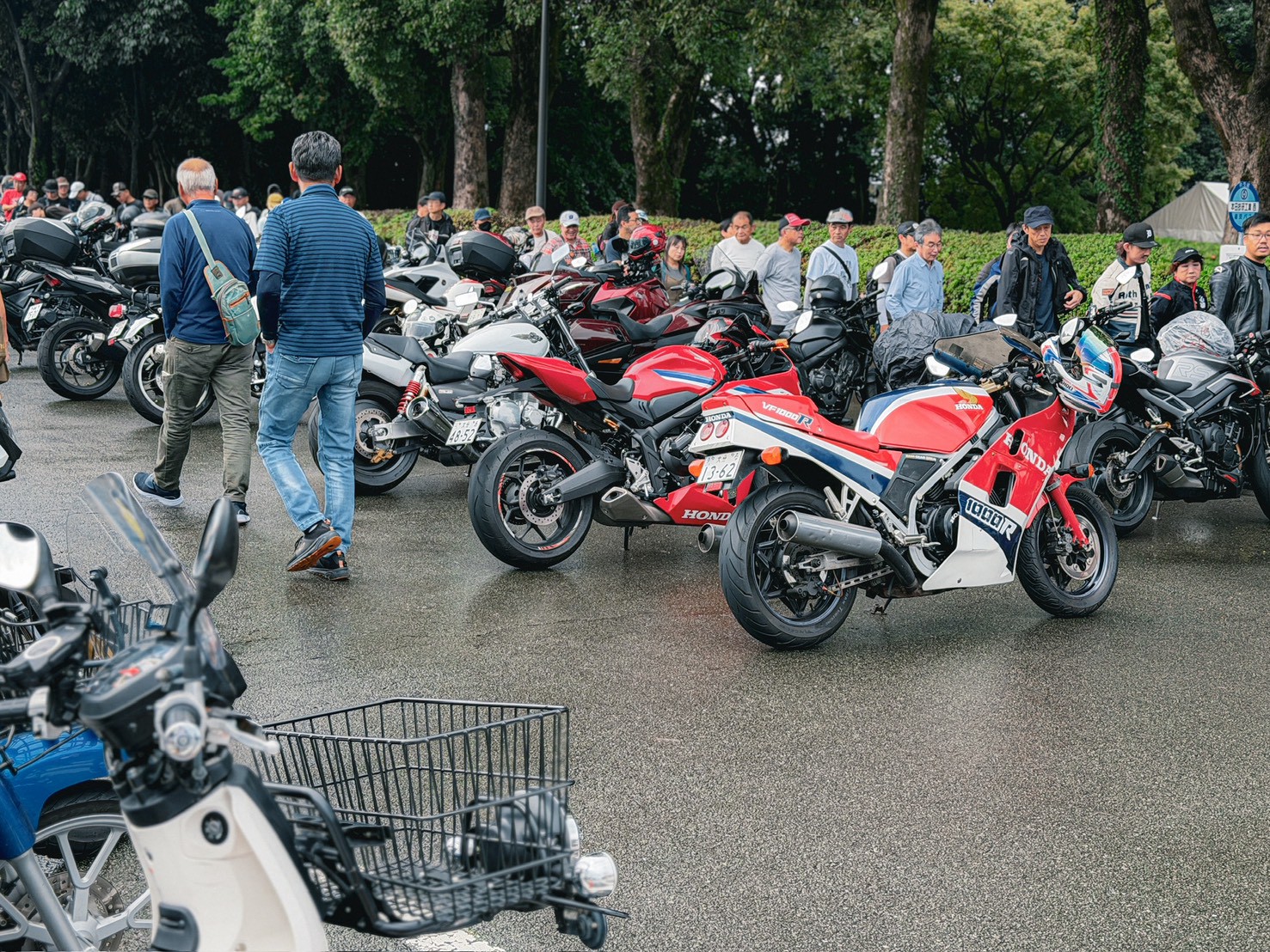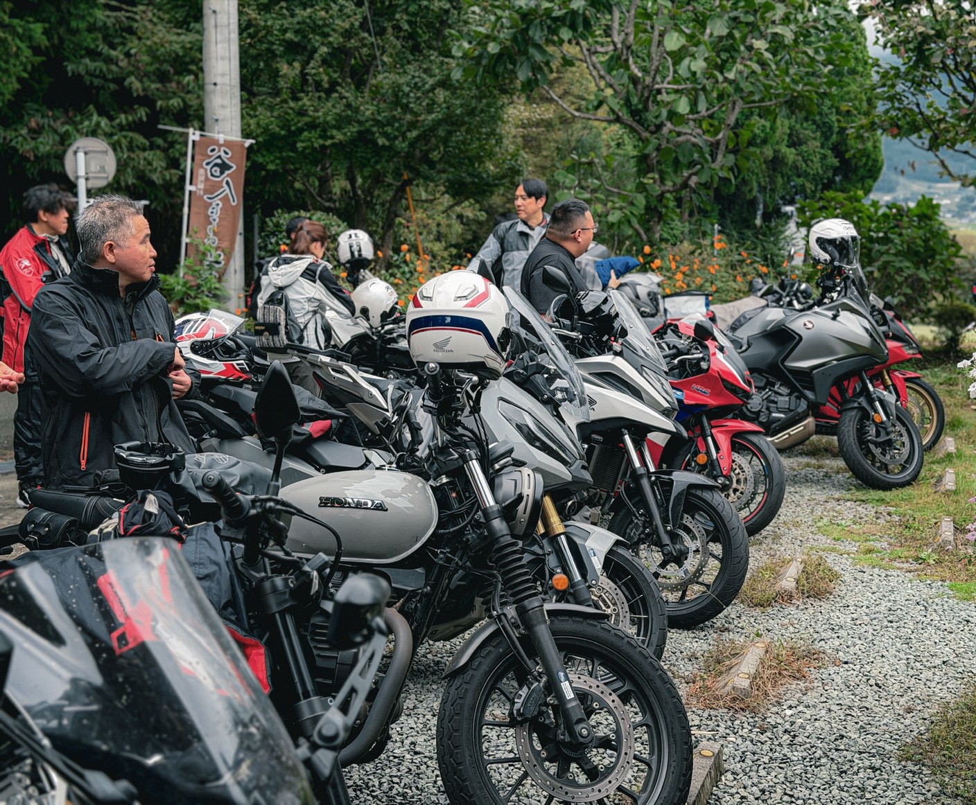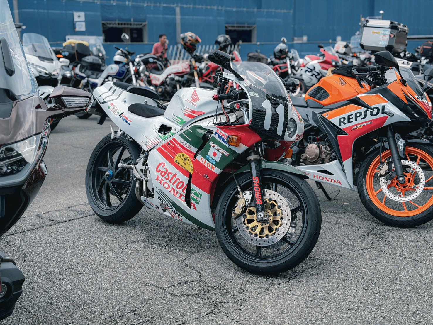 從一早進入廠區,周圍就充滿了精心打扮的 Honda 騎士,CB、Monkey、甚至各種老車都在路邊集結,場面熱鬧非凡。停車場根本就是一場「本田車展」,連 GoldWing 都能停滿一整排,那種「回娘家」的凝聚力與熱情,真的是把 JDM 魂燃到最高點!