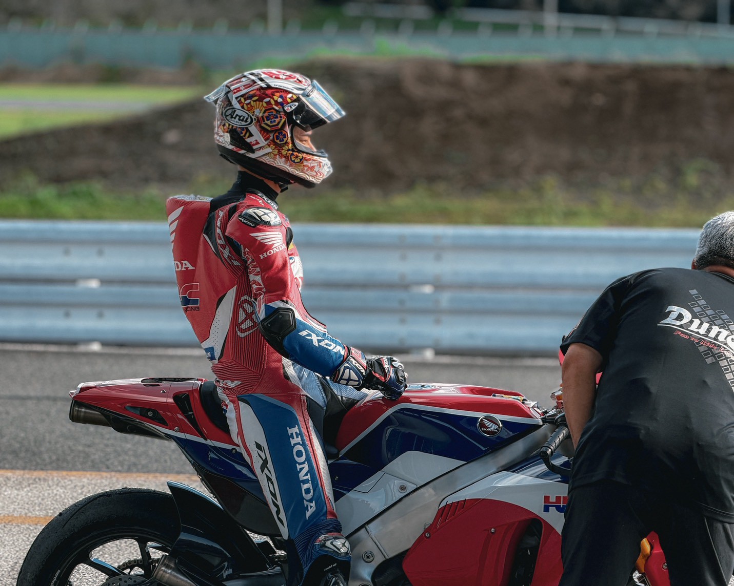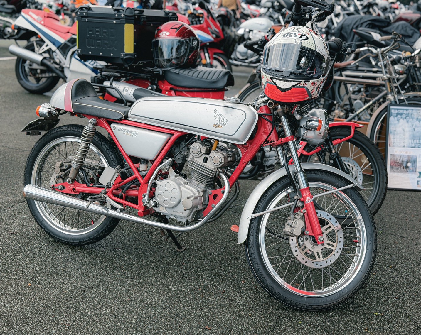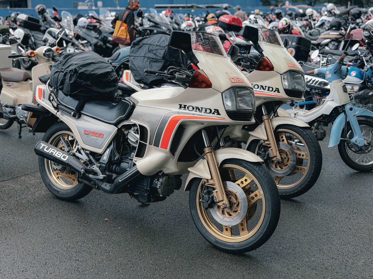從一早進入廠區,周圍就充滿了精心打扮的 Honda 騎士,CB、Monkey、甚至各種老車都在路邊集結,場面熱鬧非凡。停車場根本就是一場「本田車展」,連 GoldWing 都能停滿一整排,那種「回娘家」的凝聚力與熱情,真的是把 JDM 魂燃到最高點!