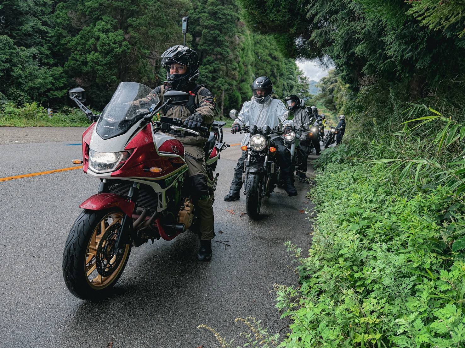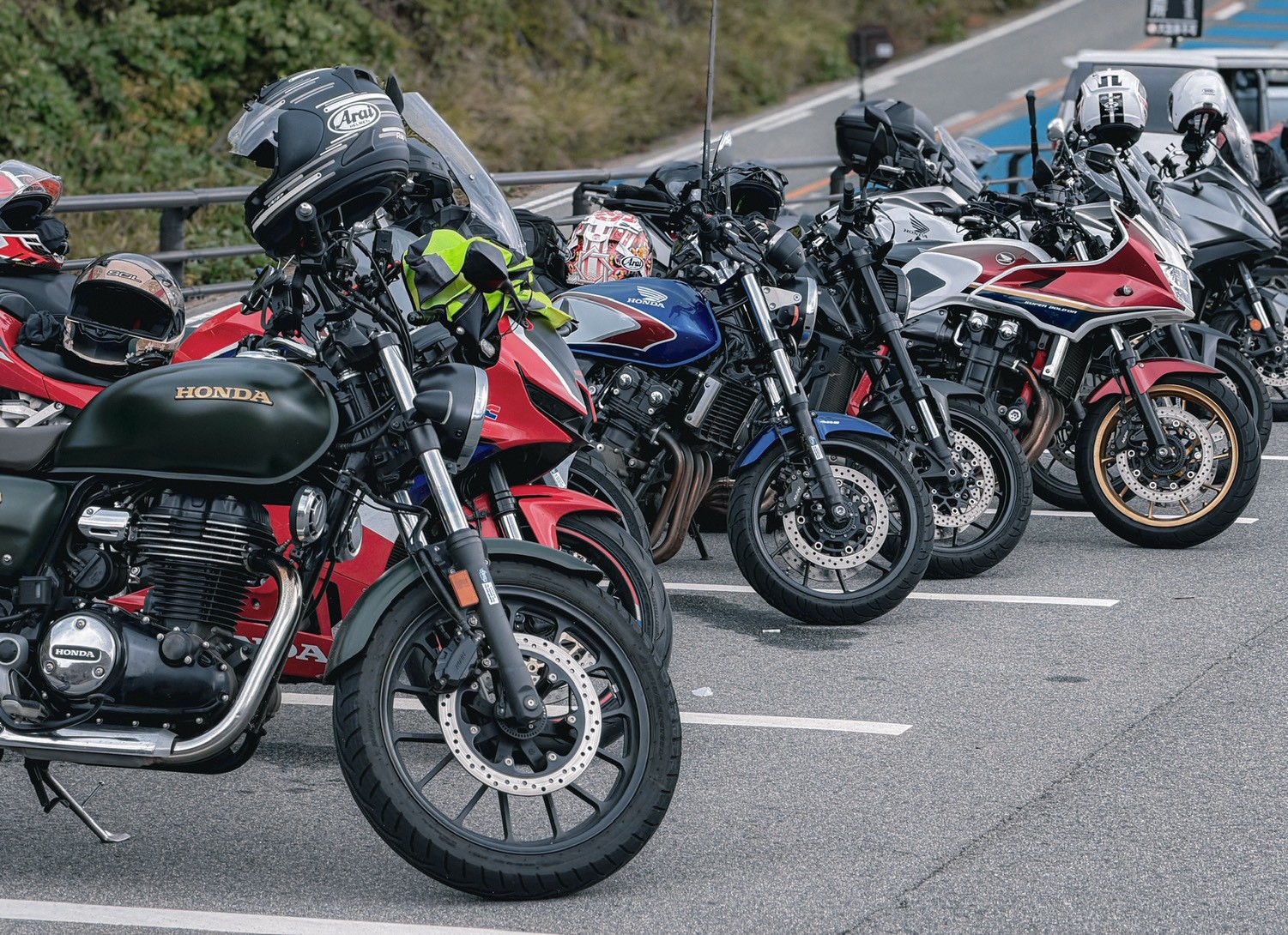 可惜的是,身為「雨神」體質的我,每次出國都開始下雨(繼上次瀨戶內海之後)。但雨水澆不熄我的熱情,畢竟這次我租的可是經典的四缸銘機 CB400!在重機剛開放的年代,這台車可是多少人的夢想。趁著這次重溫四缸聲浪,也順便猜測一下未來會不會有日規 CB500 的出現。騎上高速公路,CB400 依舊能輕鬆上到 160km/h 且毫不覺喘,當然安全騎乘才是王道(偷偷說,日本測速真的超少,超友善啊!)。