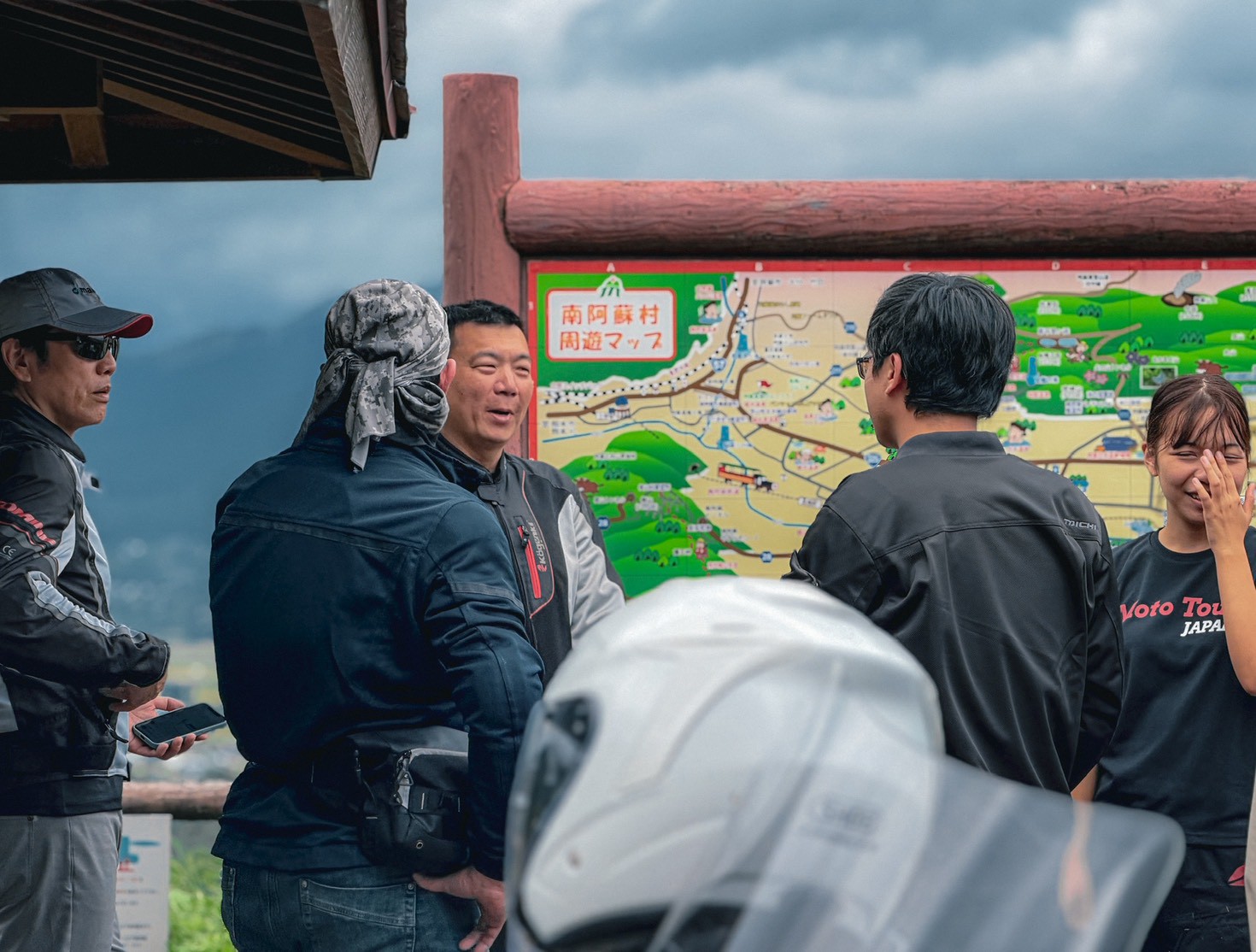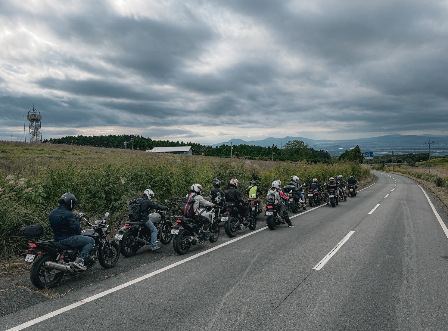 雖然因天候不佳,我們沒能看到中岳火山口裡乳白色的水,但光是在整個阿蘇地區兜風就值回票價了!這裡的地形像是被火山擠壓出來,山丘連綿不絕,覆蓋著短草,再加上雲霧瀰漫,騎在其中彷彿置身仙境。那種廣闊感,甚至超越了我上次在葡萄牙騎行的經驗,真的讓人驚嘆:「怎麼會有這種地方!」強烈推薦所有騎士一定要去阿蘇騎車!