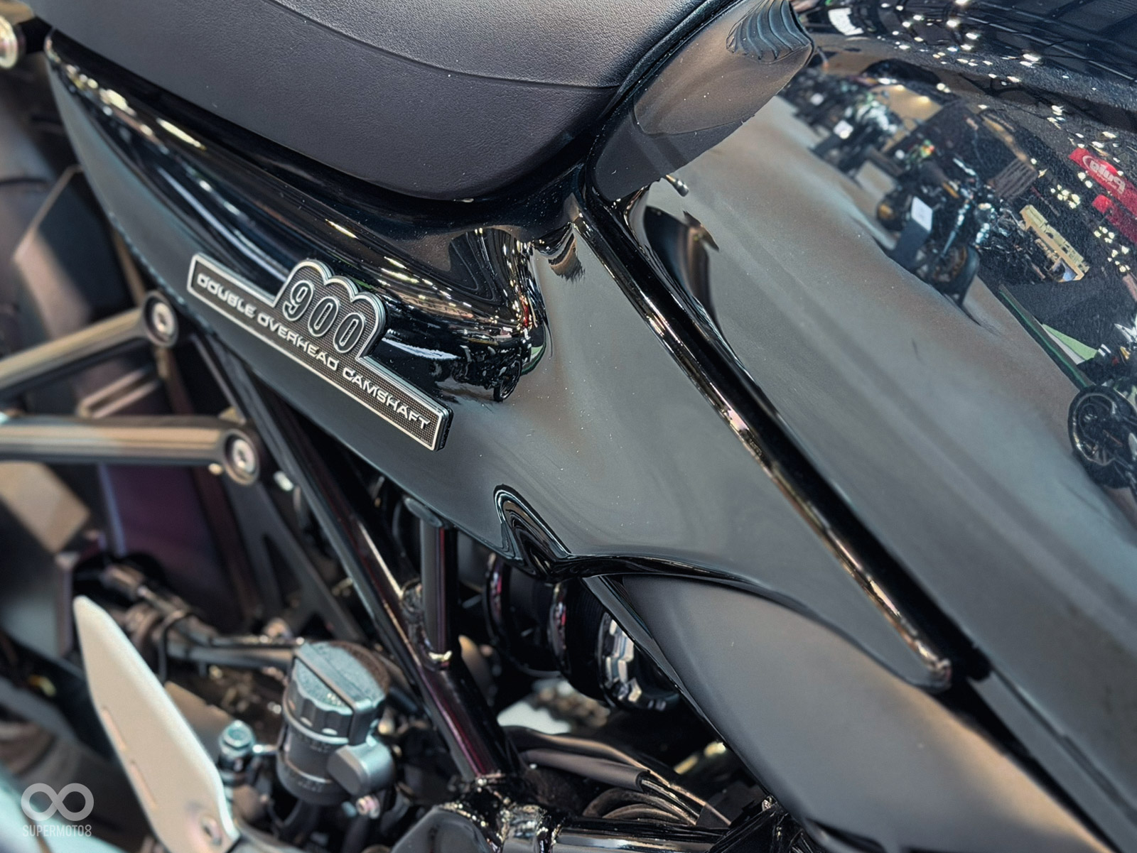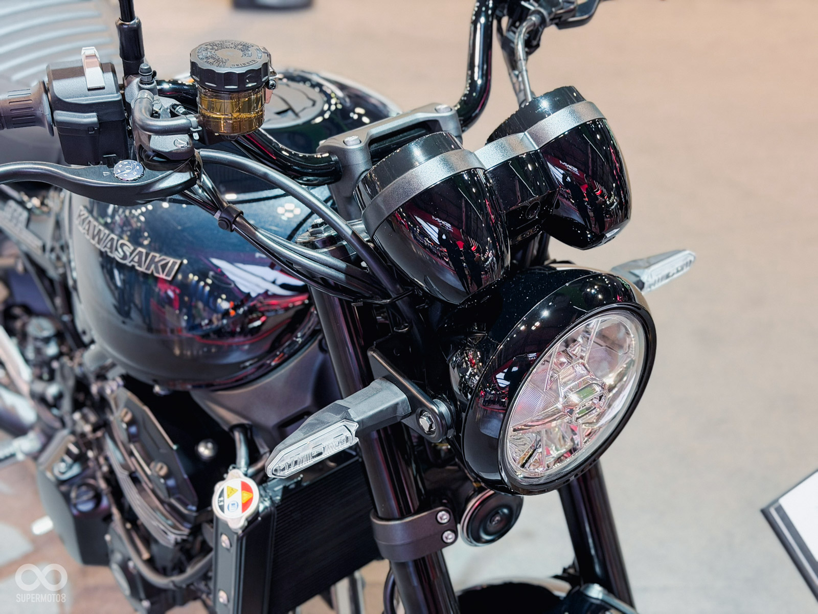 標準版Z900RS則以全黑塗裝呈現低調而霸氣的風格。全車包含車架、輪圈、車頭飾圈及油箱蓋皆採黑化處理,僅以金色線條勾勒經典輪廓,象徵「Timeless Z」的不朽精神。