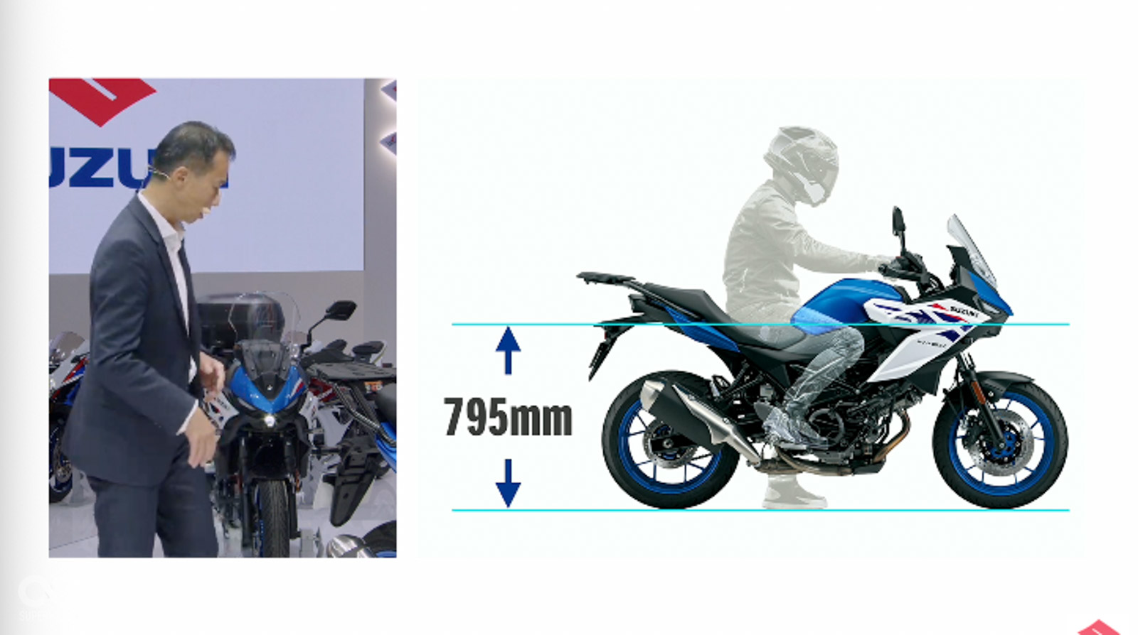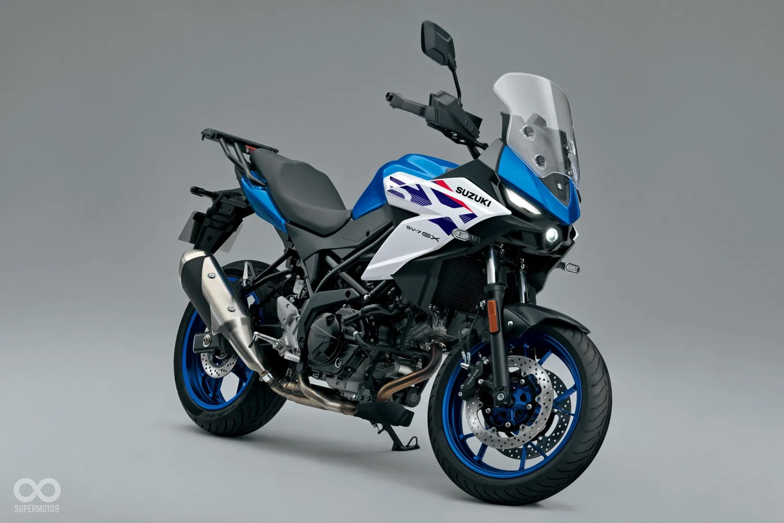 SV-7GX的定位介於SV650與V-Strom之間,鎖定Yamaha Tracer 7與Triumph Tiger Sport 660等對手。相當有趣的是過往 SV650 那標準街車的架構,現在搖身一變成為舒適且配備升級的公路旅行車。