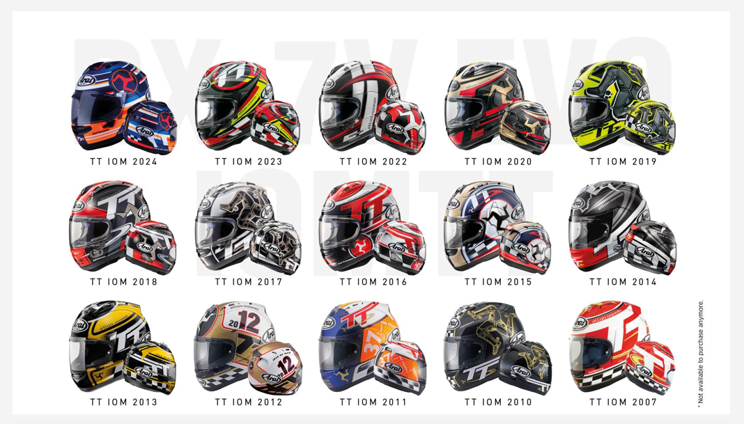 Arai 與曼島 TT 的合作關係已經超過四十年,這不僅僅是一個商業贊助,更是一種對公路賽車文化的致敬。這頂 2026 年式樣是雙方合作推出的第 17 款限定帽,對於許多收藏家來說,這早已不單單是人身部品,而是擺在櫃子裡的藝術品。如果您對目前的 RX-7V Evo 有興趣,或是本來就在觀望頂級賽道帽,這次的新花色或許就是讓您下定決心的最後一根稻草。