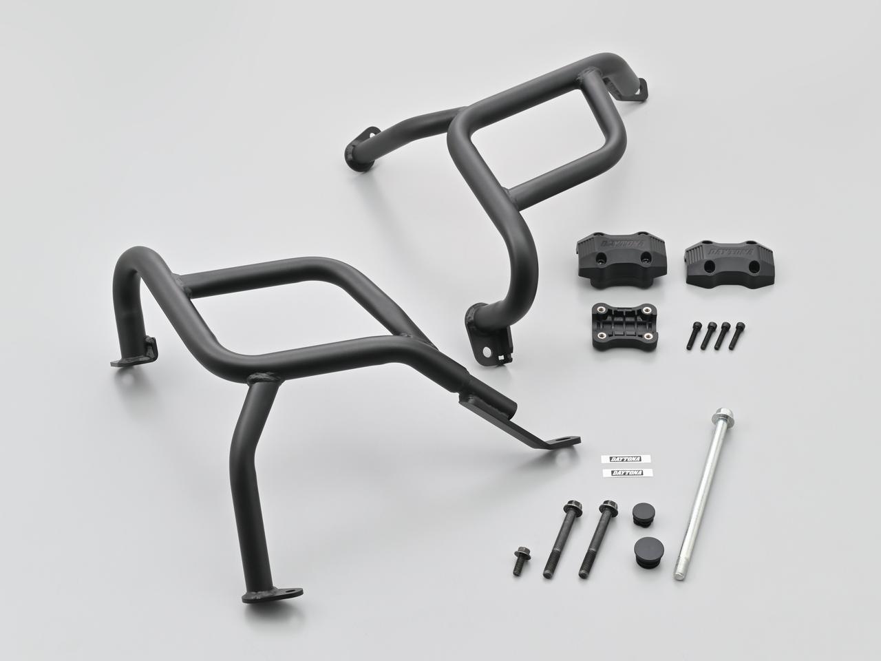 講到新車落地,大家最怕的肯定是倒車,尤其是这种公升級街車,原地倒一下心都會碎滿地。Daytona這次準備了非常完整的防護方案。首先是管徑達到28.6mm的鋼管引擎保桿,這東西不只是保護曲軸箱,它獨特的左右連結結構強度很高,萬一不幸轉倒,保桿會先接地,替騎士的腿部爭取生存空間,避免被夾在車身下。