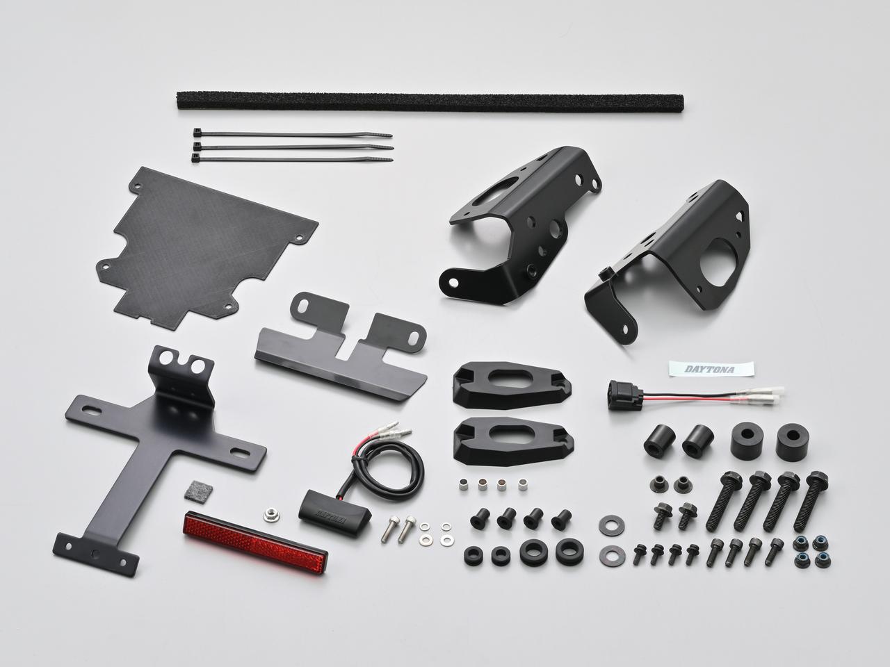 這組套件包含了符合法規要求的LED牌照燈,而且強調完全「直上」,不需要另外購買轉接座或其他零件,方向燈部分則是可以直接沿用原廠規格,當然如果你想要更戰鬥一點,也可以另外搭配Daytona自家的M-1方向燈底座來改裝副廠方向燈。不過要特別提醒的是,這組短牌架沒辦法跟他們家的鋁合金牌照框或是後貨架同時安裝,想要帥氣屁股還是實用載貨,你得二選一。