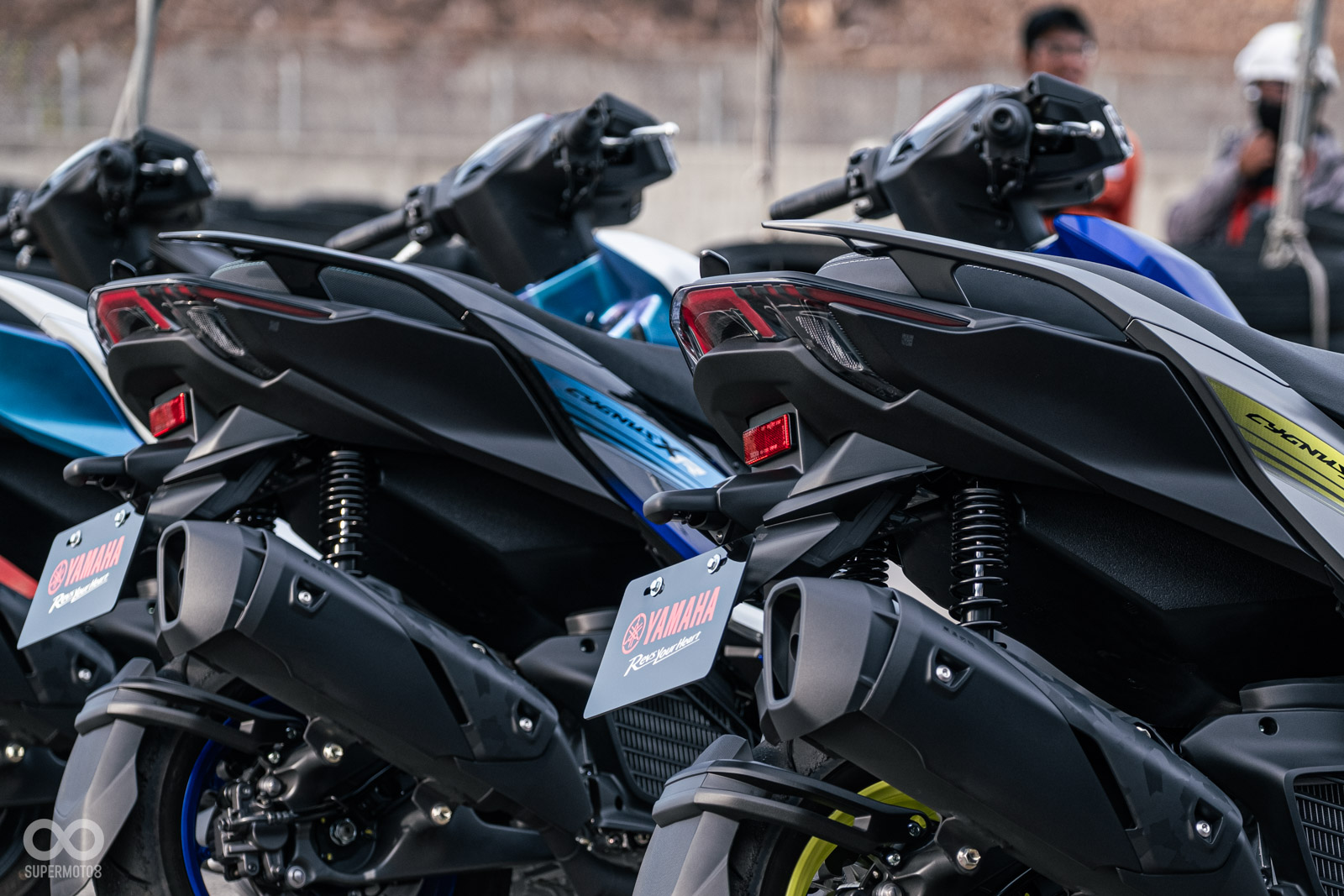 懸吊系統方面,後避震升級為無段式預載可調的氮氣掛瓶避震器,並針對彈簧 K 值進行重新設定(初段調低 3.4%,後段調低 11.7%),在提升操控靈活性的同時,也兼顧了路感吸收與舒適度 。足下配置則選用了 Maxxis R1N 性能胎,前輪規格為 110/70-12,後輪為 130/70-12,其中前輪框採用 MT2.5 設定,為競技改裝預留了空間 。