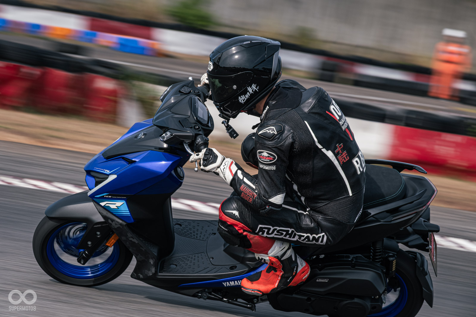 一進入賽道,這顆 155c.c. 引擎的性格便表露無遺。雖然帳面擁有 14.7 PS 馬力,但初次轉下油門時,你會發現起步反應被原廠 13 克的普利珠給「封印」了,加速感稍顯溫和。不過別擔心,只要簡單換上輕量化的普利珠,這頭猛獸就會瞬間甦醒!這顆引擎真正的精華藏在中高轉速域,Yamaha 招牌的抑震技術讓運轉如絲般滑順,讓你敢大膽地將油門扣在動力峰值。特別是出彎補油的那一刻,那股彷彿背後「被踹一腳」的扎實推力,正是 125 版本無法比擬的爽快感。