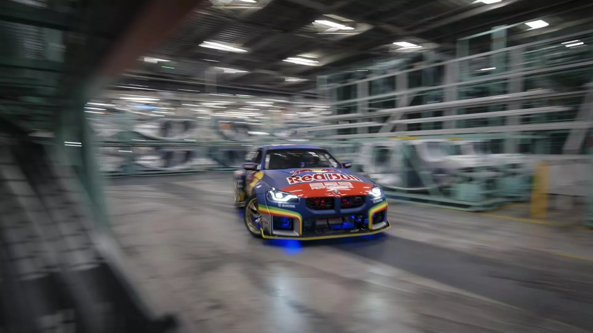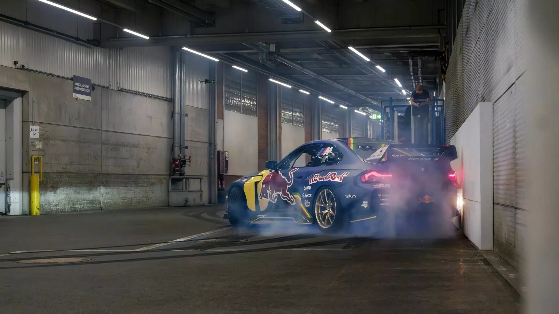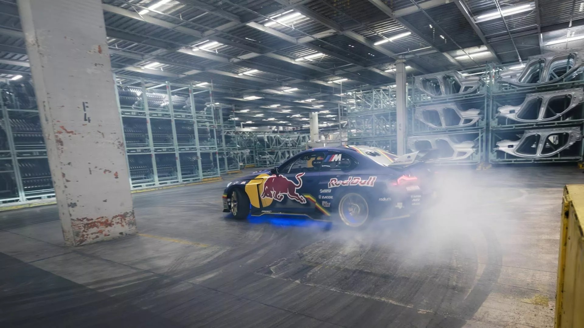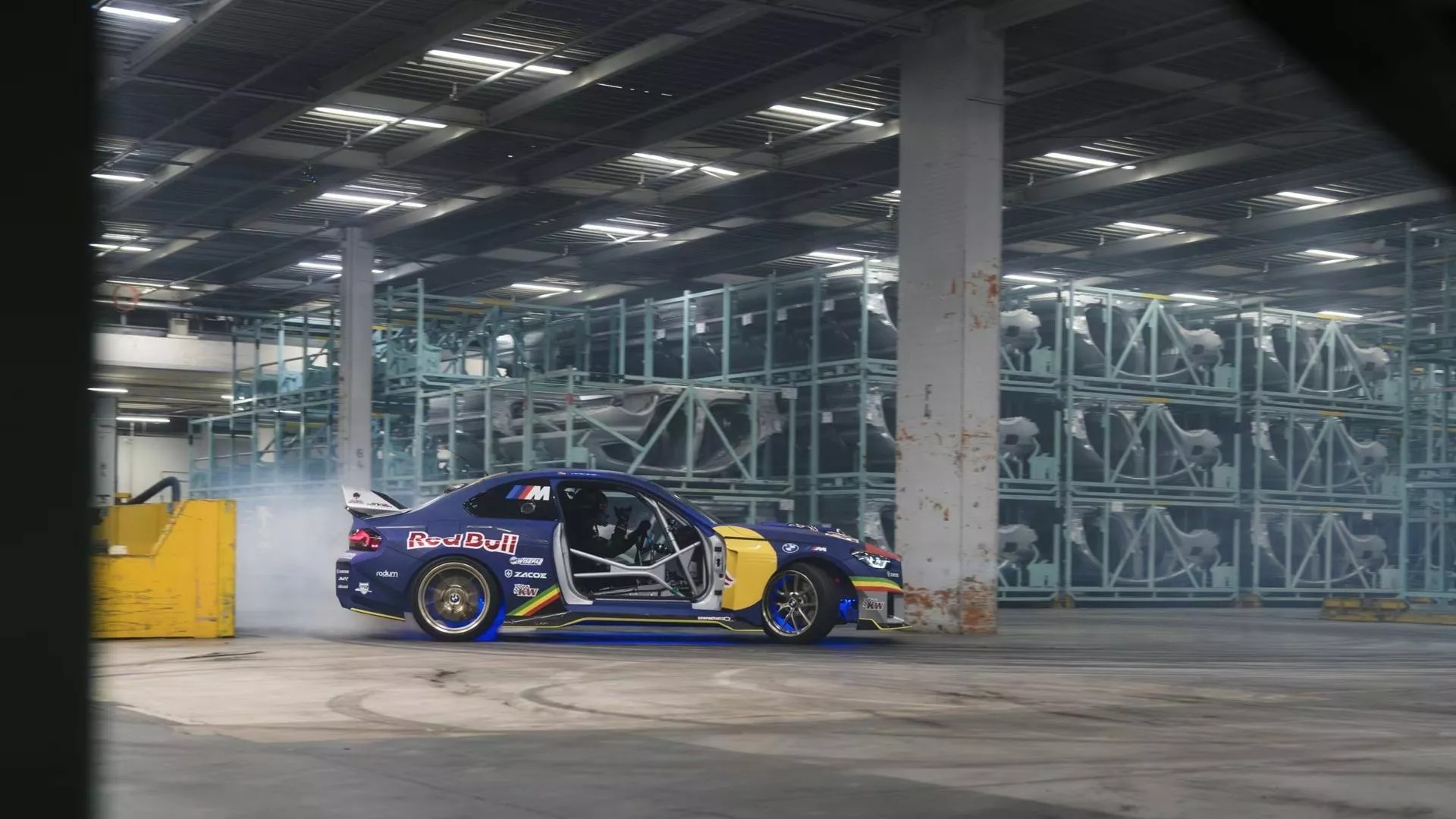 BMW在慕尼黑工廠內進行了一場極具視覺衝擊力的活動,由專業飄移車手Elias Hountondji(來自Red Bull Driftbrothers)駕駛一輛經過改裝的M2,於組裝線、機械手臂與生產設備之間滑行穿梭。整個場景中,車輛近距離擦過機械設備、地面遍佈滑胎留下的黑痕,極為大膽,也格外驚險。