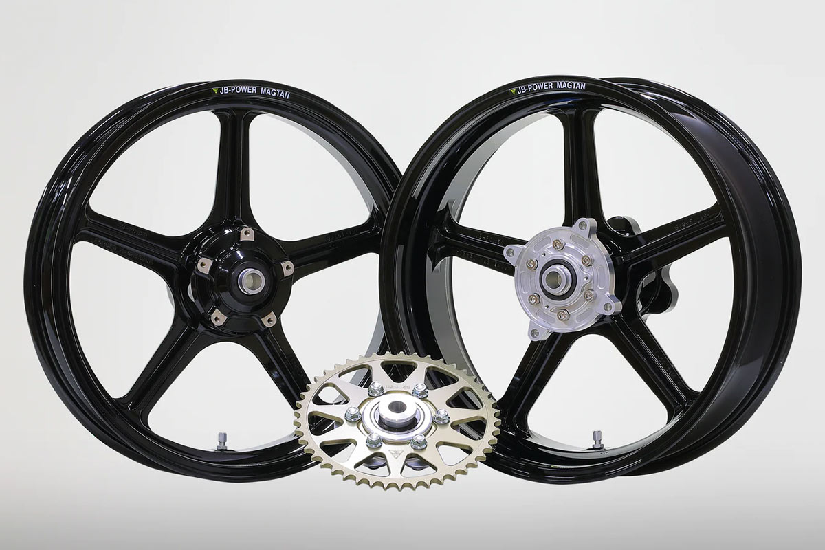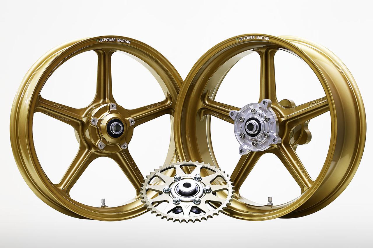這次改裝清單中最讓人流口水的,絕對是這組由BITO R&D與TSR聯名開發的CB1000F專用鎂合金鍛造輪框。造型上採用了最經典的「JB1」設計,那種簡單粗暴的線條,裝在街車上就是對味,顏色方面提供了黑色與金色兩種選擇。大家要知道,鎂合金鍛造輪框的重量大約只有鋁合金鍛造輪框的67%,也就是說輕了將近三分之一,而且強度依然維持在高水準。
