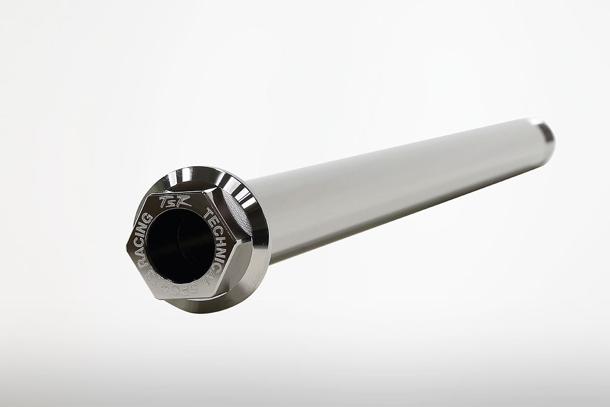 除了視覺系的輪框,TSR身為長年征戰EWC世界耐久賽的隊伍,推出的機能件也是滿滿的「牛肉」。首先是與CB1000 Hornet通用的競技輪軸套管,採用了錐形設計,這是為了在比賽中能更快速拆裝輪胎的設計,配合特殊的溝槽結構能防止脫落,這可是實打實的賽道KNOW-HOW。
