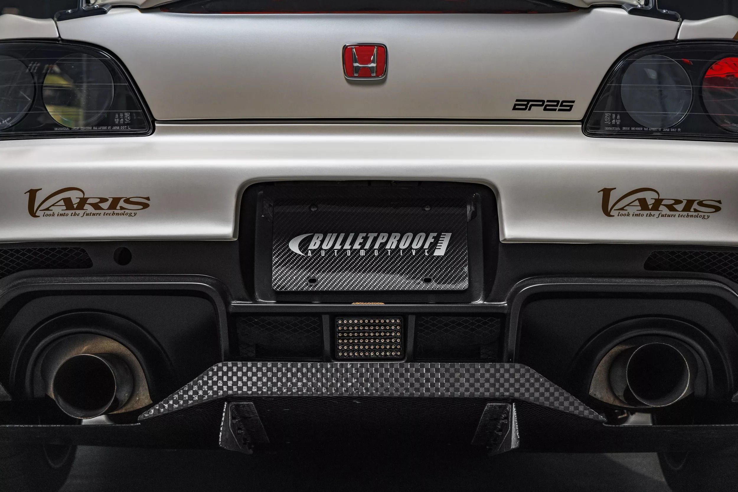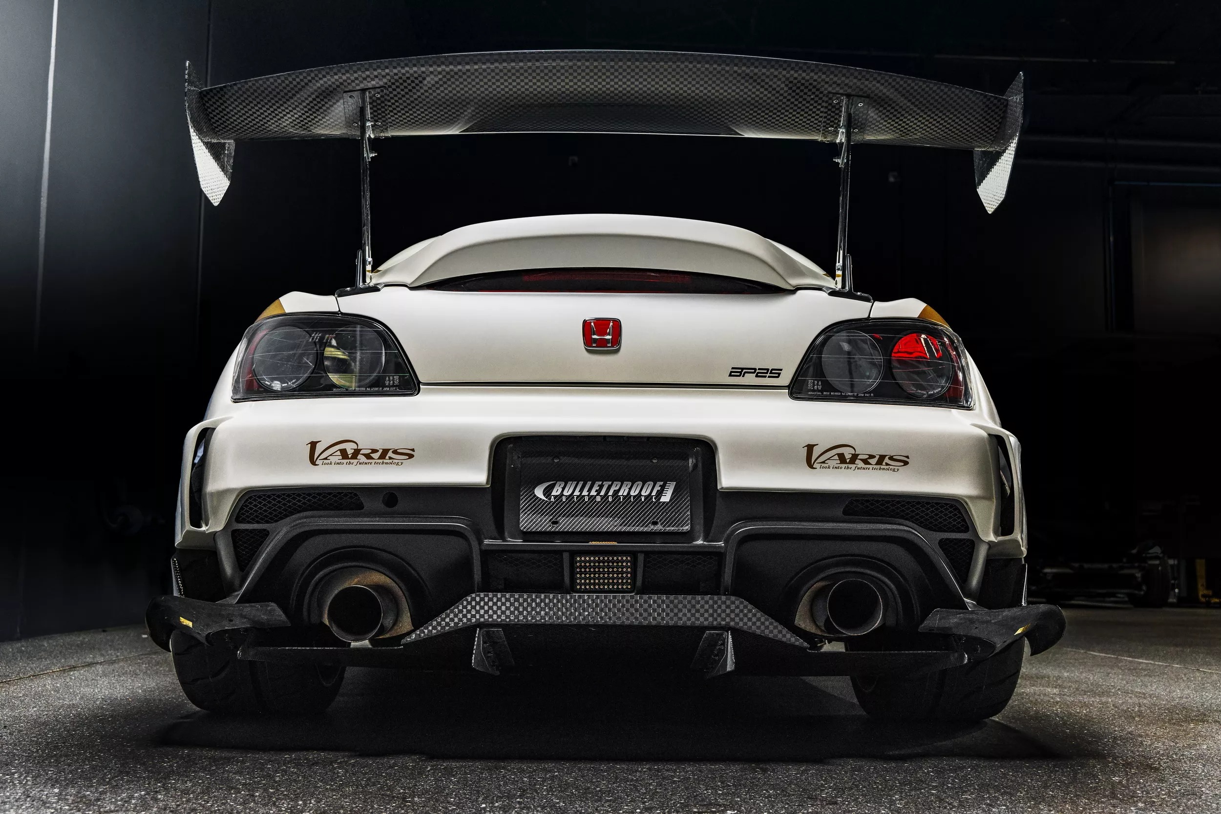 動力部分,Bulletproof將原本的F20C 2.0升自然進氣引擎進行全面重構,搭載Vortech機械增壓系統,輸出一舉提升至580匹馬力,並在9,300 rpm發揮峰值功率,紅線極限則被推至令人驚嘆的10,000 rpm。動力透過升級後的六速手排變速箱與限滑差速器輸出至後輪,同時搭配Amuse鈦合金排氣歧管與70mm Euro Dual鈦合金排氣系統,營造出純正JDM賽車的高頻金屬聲浪。