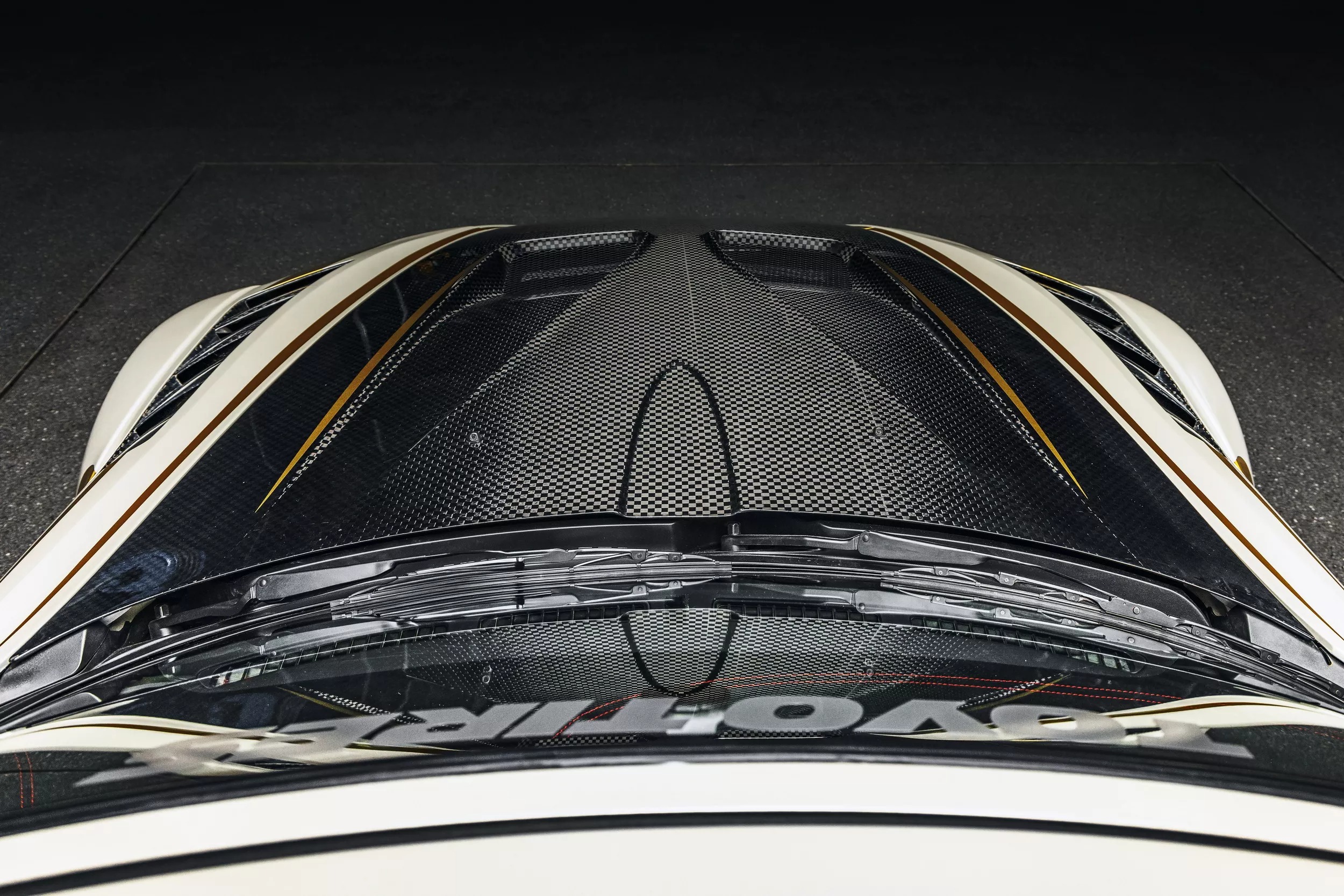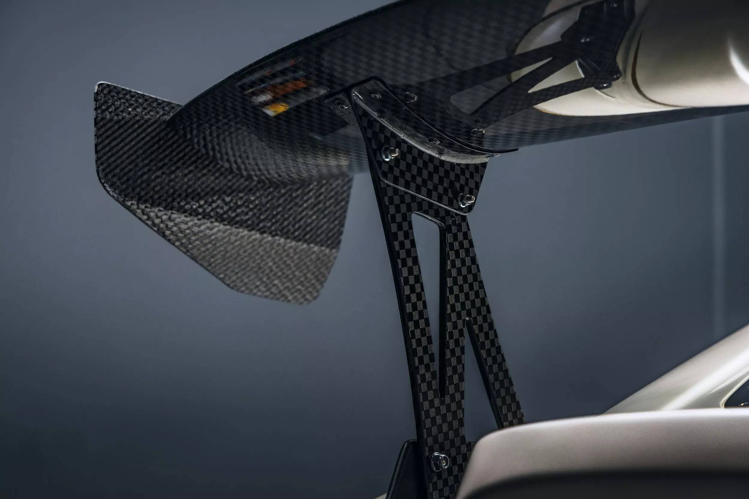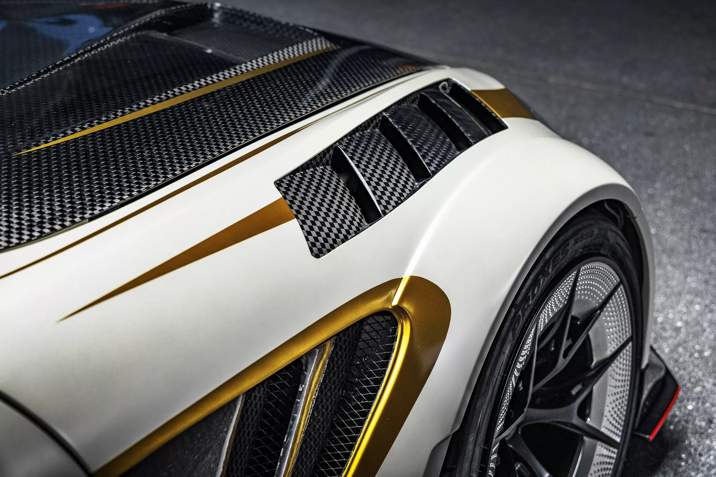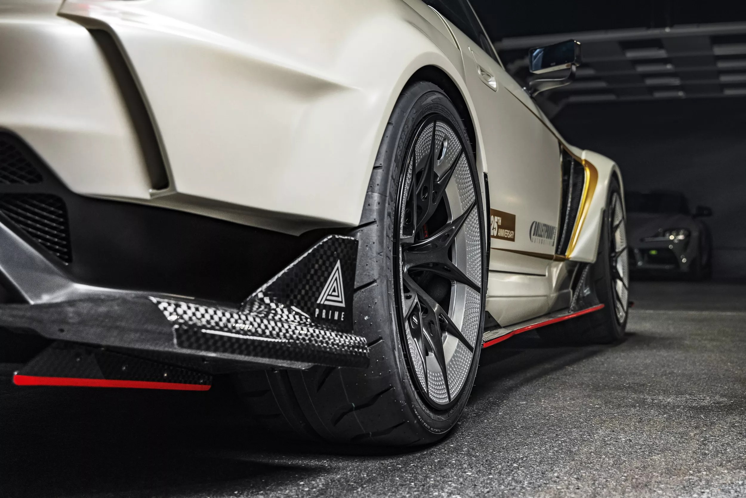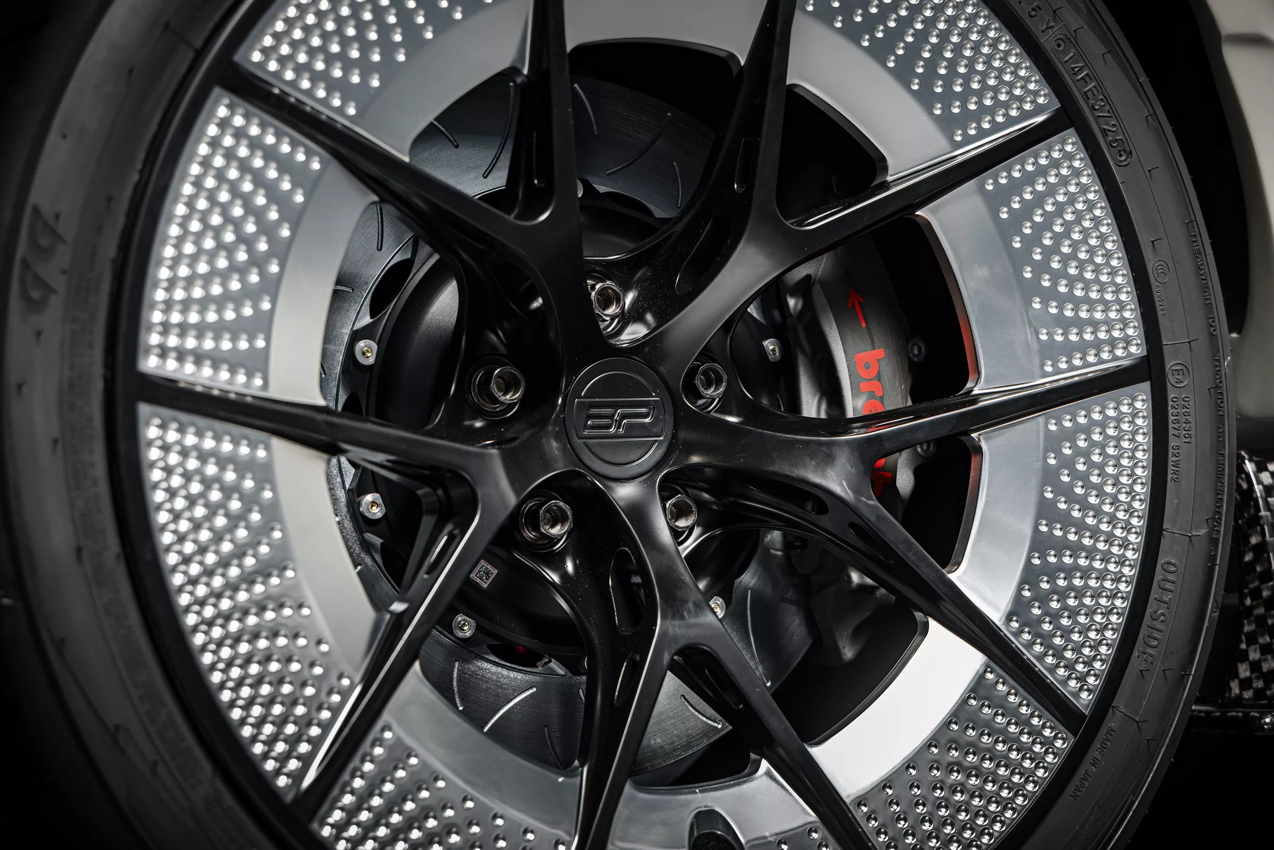 車身細節更見匠心:碳纖維與鎂合金混製的賽車後視鏡、客製化LED尾燈組合、以及靈感源自日本傳統「鍛金工藝」的19吋BP-RW Evolution鍛造輪圈,皆強調高級工藝與文化象徵。車輪內部隱藏著Brembo Pista鍛造煞車系統,搭配由Top Secret、J’s Racing、Spoon、Roberuta、EVS與Hardrace等頂尖品牌共同打造的懸吊套件,使整車底盤設定更貼近賽道取向。