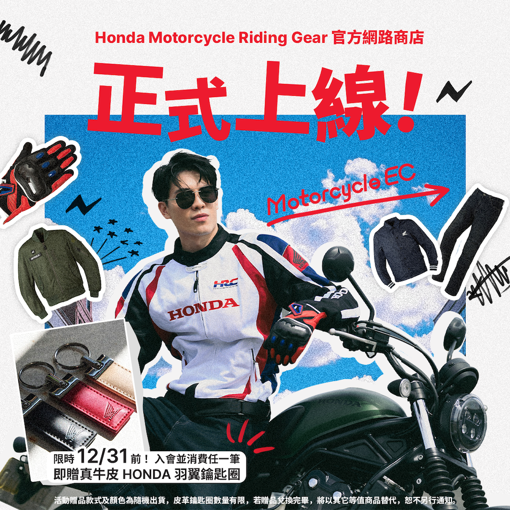 Honda Taiwan 致力於提供車主全方位的騎乘與生活體驗,今日正式宣布 「 Honda Motorcycle Riding Gear 」官方網路商店全面上線,帶給所有車主更便利、完整且安心的購物環境。