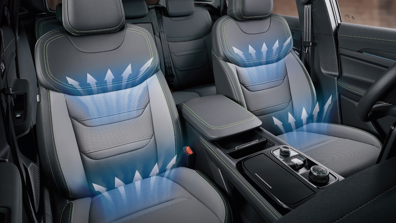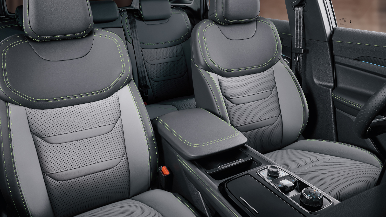 座艙內部配備人體工程學設計座椅,提供優異的側翼包覆性與腿部支撐,寬景中賦予自由靈活的肩部活動空間,並採用豪華品牌御用的PANGEA頂級真皮旗艦皮質打造,展現高端質感氛圍;雙前座更提供電動調整(駕駛座10向)與多段數可調的通風座椅功能,鋪陳自在愜意的頭等艙級乘坐享受。此外,雙動力車型內裝皆採專屬雙色Two-Tone套件,1.5T汽油渦輪搭配Manuka琥珀棕/Domino迷霧黑,以及HornWood霍恩木紋;1.5T Per4mance Hybrid油電車型採Nano晨曦灰/Domino迷霧黑,搭配Zest琉光綠縫線,以及Tech Matrix科技矩陣紋座艙飾板,並具備64色LED環艙氛圍氣氛燈,展現科技與質感俱進的用車氛圍。