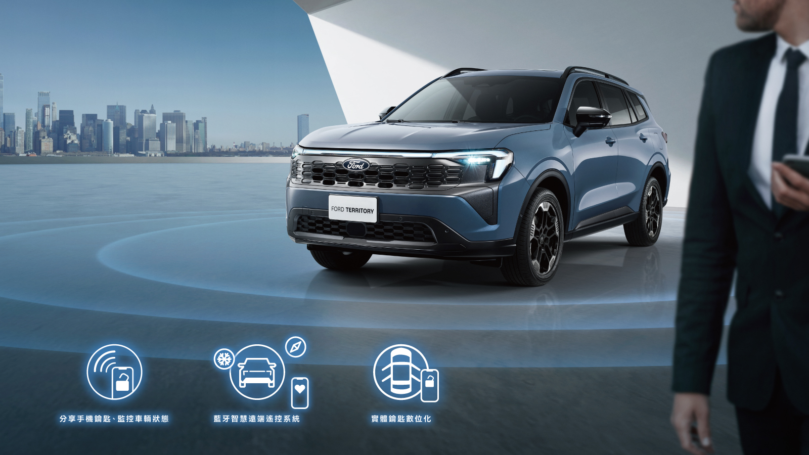 The All-New Ford Territory也首度導入媲美豪華品牌的MyPaaK手機鑰匙2.0,消費者只需下載專屬app,透過藍牙連接車輛,手機瞬間變身第三把鑰匙,便利執行車輛上解鎖、空調啟閉、車窗開關、車輛狀況監控等15項遠控功能。同時車內更提供電子後視鏡、PM2.5負離子監控、66W Type-C快充、Qi手機無線充電等多項領先同級之科技配備,具體實踐「智行生活」的移動風範。