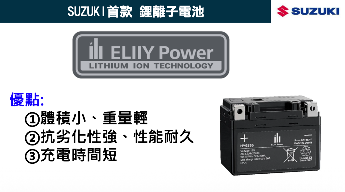 此外,車輛還配備了由 ELIIY Power 製造的鋰離子電池,具備輕量化、體積小且低溫啟動性佳的特點,進一步減輕了車重負擔。