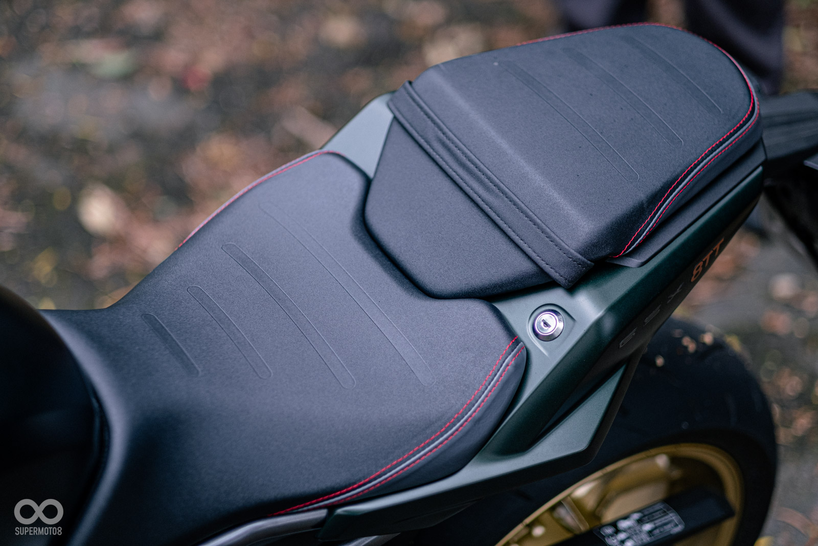 座墊部分也經過特別優化,8TT 採用了專屬的雙材質拼接設計 ,搭配高密度泡棉,提供了優異的支撐性與止滑效果。這意味著,你可以騎著它去更遠的地方,去追尋那些屬於騎士的風景。