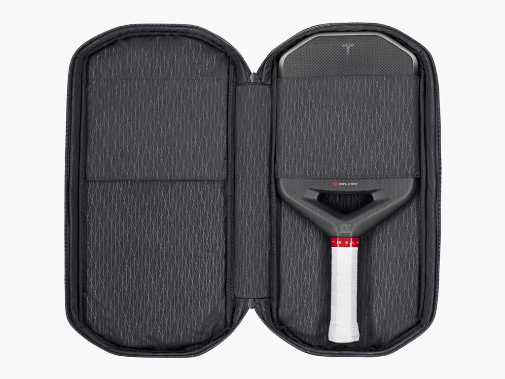Tesla 與美國知名球拍品牌 Selkirk Sport 合作,推出一款高階 Plaid Pickleball Paddle。這支球拍延續 Tesla Plaid 性能車的精神,採用 碳纖維面板與 Air Dynamic Throat 設計,提升空氣流動與擊球穩定性。