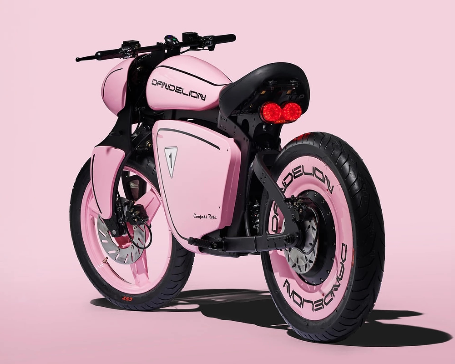 Dandelion 也有兩種版本:高階 Lighting 版最高時速 150km/h,標準版則為 90km/h,售價約 US$5,700,相較 Ciulator 的 US$50,000 更親民;Compass Rose 的作品強調「藝術化電動摩托」,不以傳統量產思維為主,而是將摩托車視為設計與工藝的載體。