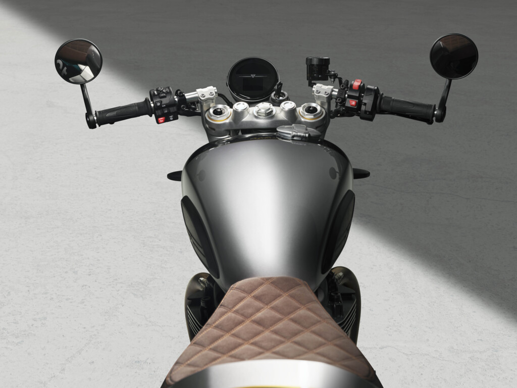 對於追求性能與風格並重的高標玩家來說,Speed Twin 1200 本身就已經是街道上的強勢機種,但這款 Cafe Racer Edition 硬是把規格頂到了天花板,它的外型靈感直接取自當年的英倫賽車,最明顯的改變在於那對低垂的分離把,搭配向後收窄的棕色毛毛蟲座墊。