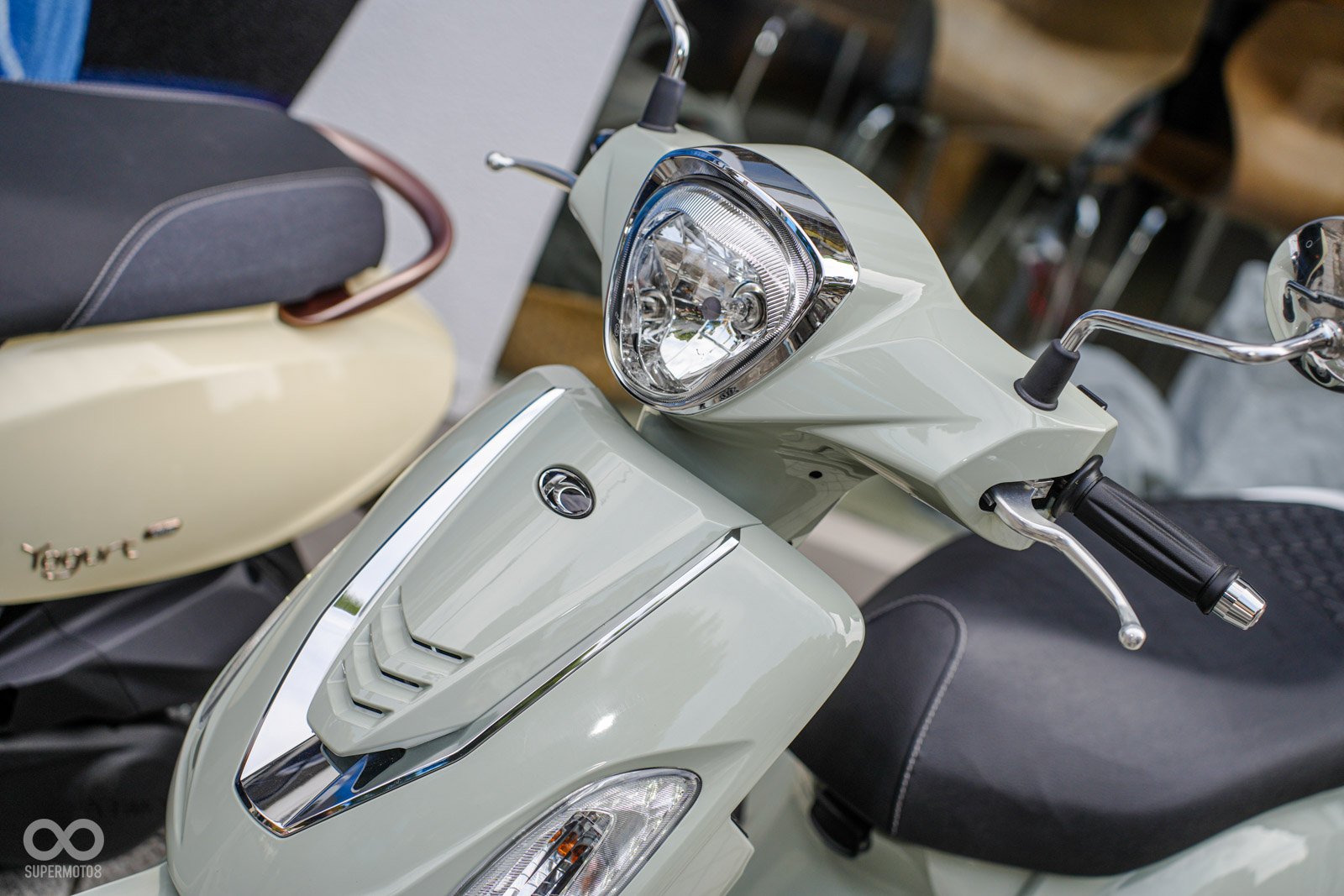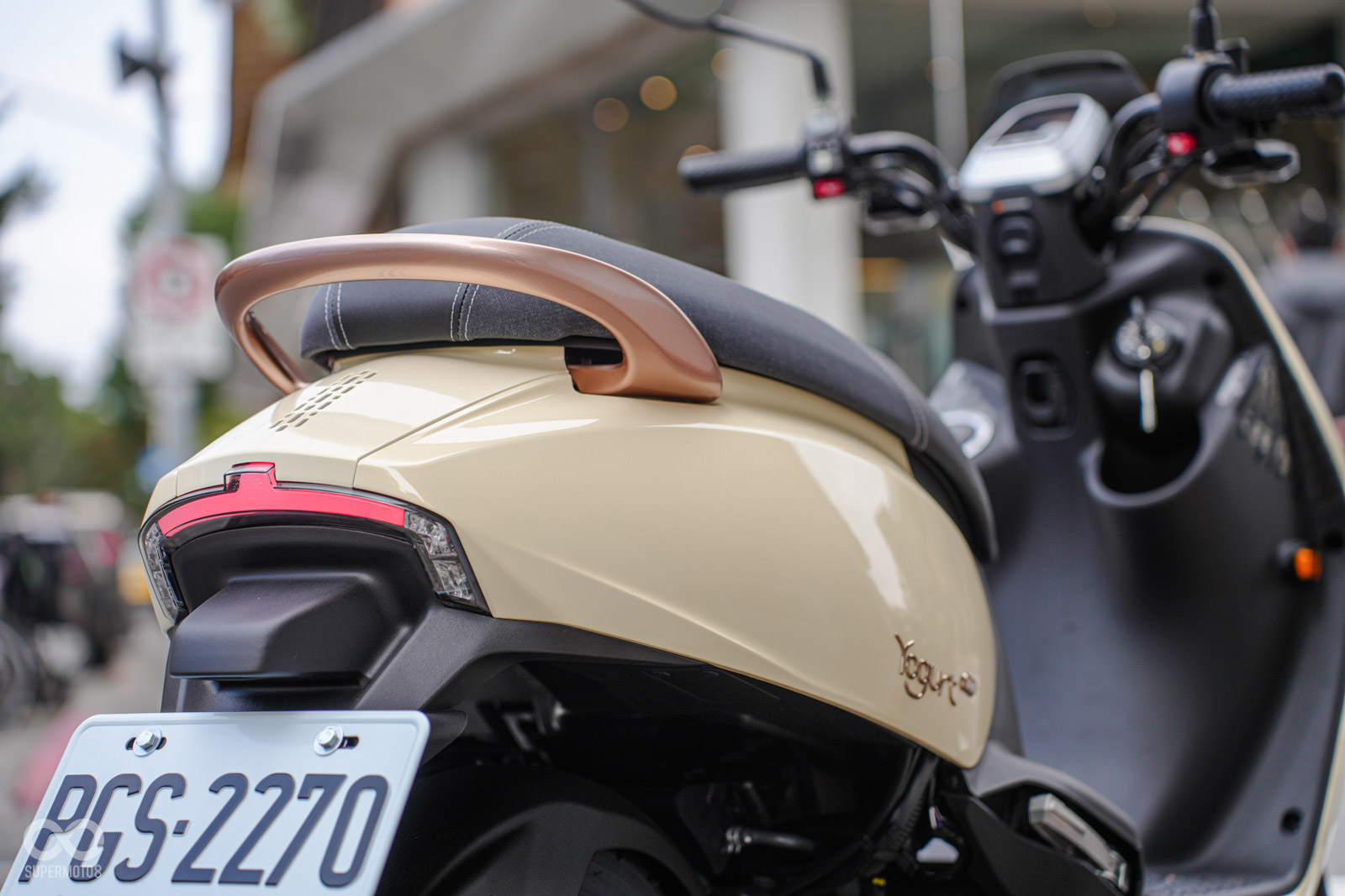 外觀質感上,Yogurt Slim 導入了輕奢華的「柏金風格設計」。從車頭的鉑金大燈飾框、前飾板,一路延伸到車側的立體名牌與後扶手,皆採用了質感的柏金配色點綴。搭配挑高拉伸的前土除線條與簡約有型的防燙蓋,讓整台車散發出精品般的細膩光澤;車身車殼也完全重新設計,保有原本吧收束造型外將左右線條收緊,營造出更纖細的車身線條。